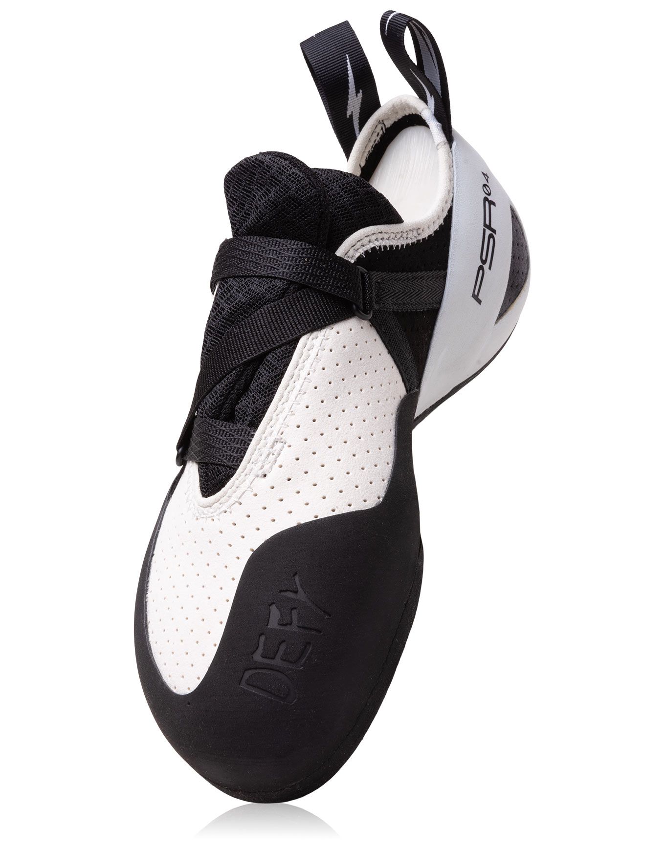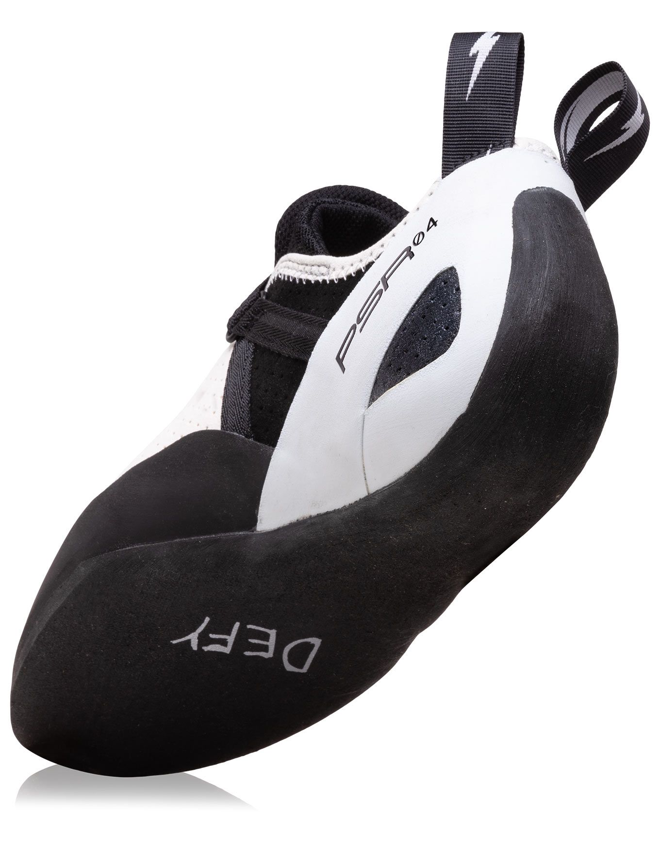 Une précision accrue est obtenue grâce à la construction légèrement asymétrique du chausson, couplée à une faible cambrure. La respirabilité est assurée par une tige perforée, tandis que la souplesse de la construction au niveau du talon procure un confort supplémentaire sans compromettre les performances du chausson.