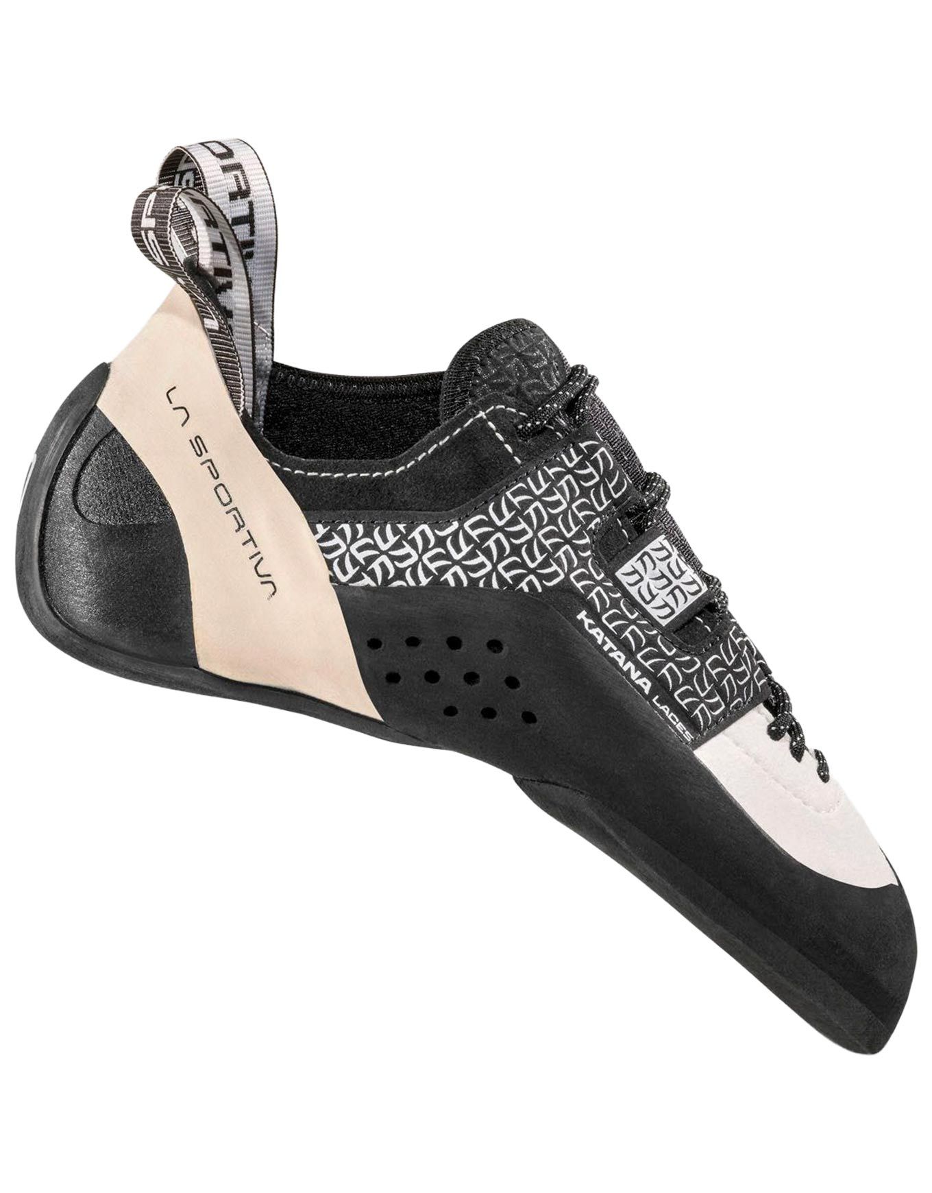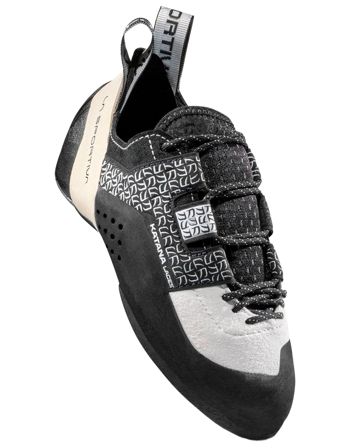 Chausson d’escalade femme La Sportiva Katana Laces Woman en cuir et microfibre, semelle Vibram XS Edge, laçage rapide, talon redessiné pour précision et sensibilité accrues sur toutes les surfaces.