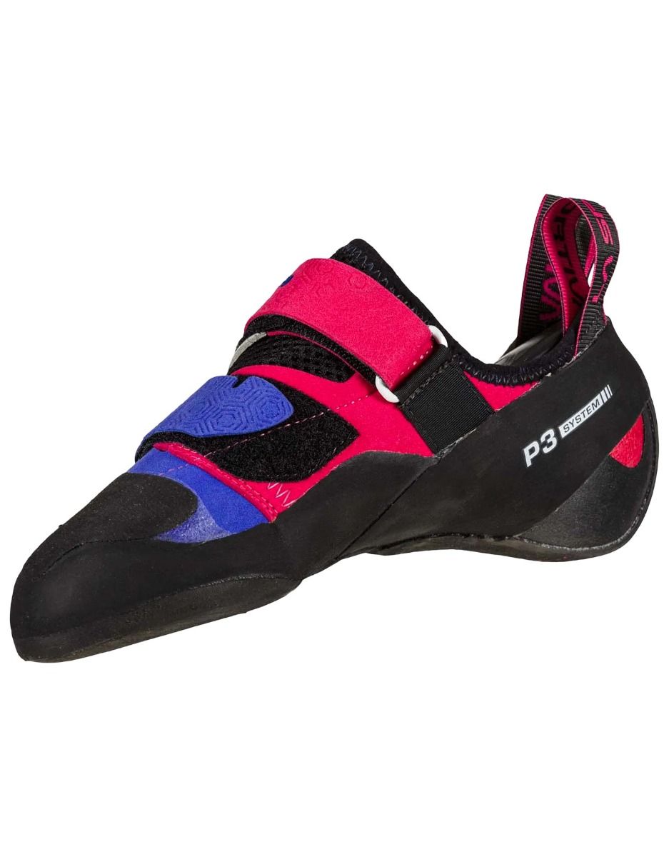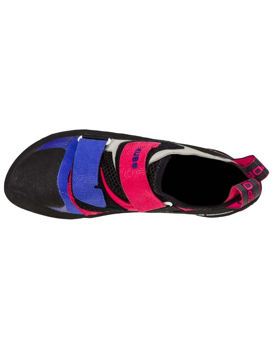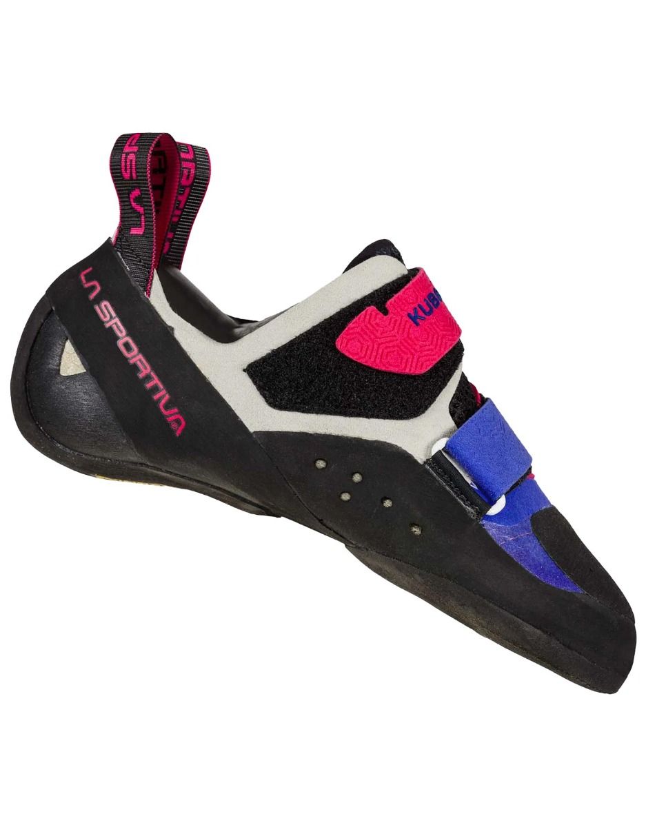 Chausson d’escalade La Sportiva Kubo pour femme, polyvalent et conçu pour la salle. Microfibre respirante, semelle Vibram® XS Edge, double Velcro® pour un ajustement précis. Cambre et asymétrie faibles offrant confort et sensibilité aux grimpeuses intermédiaires.