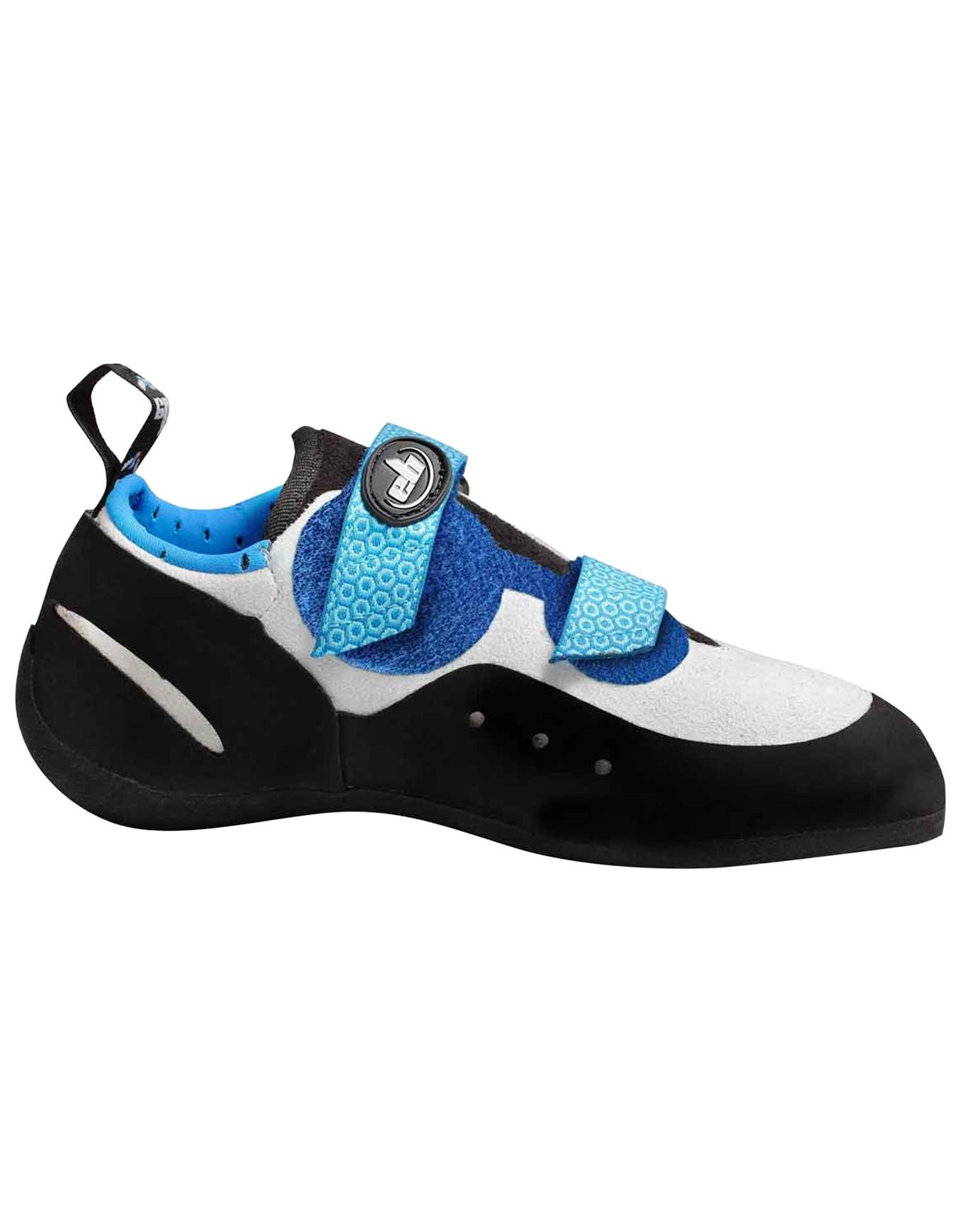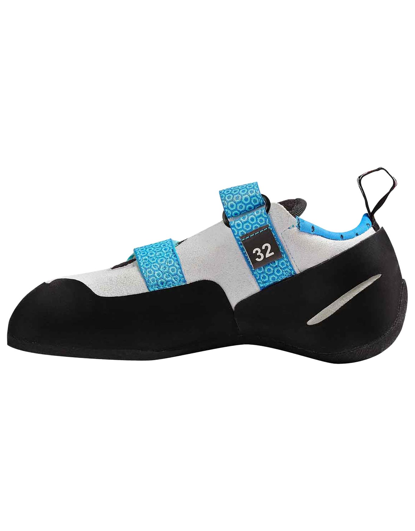 Chaussons d’escalade EB Neo Kid, unisexes enfant, niveau débutant-intermédiaire. Microfibres Dynamic respirantes, semelle Spider, faible cambrure, passant arrière.
