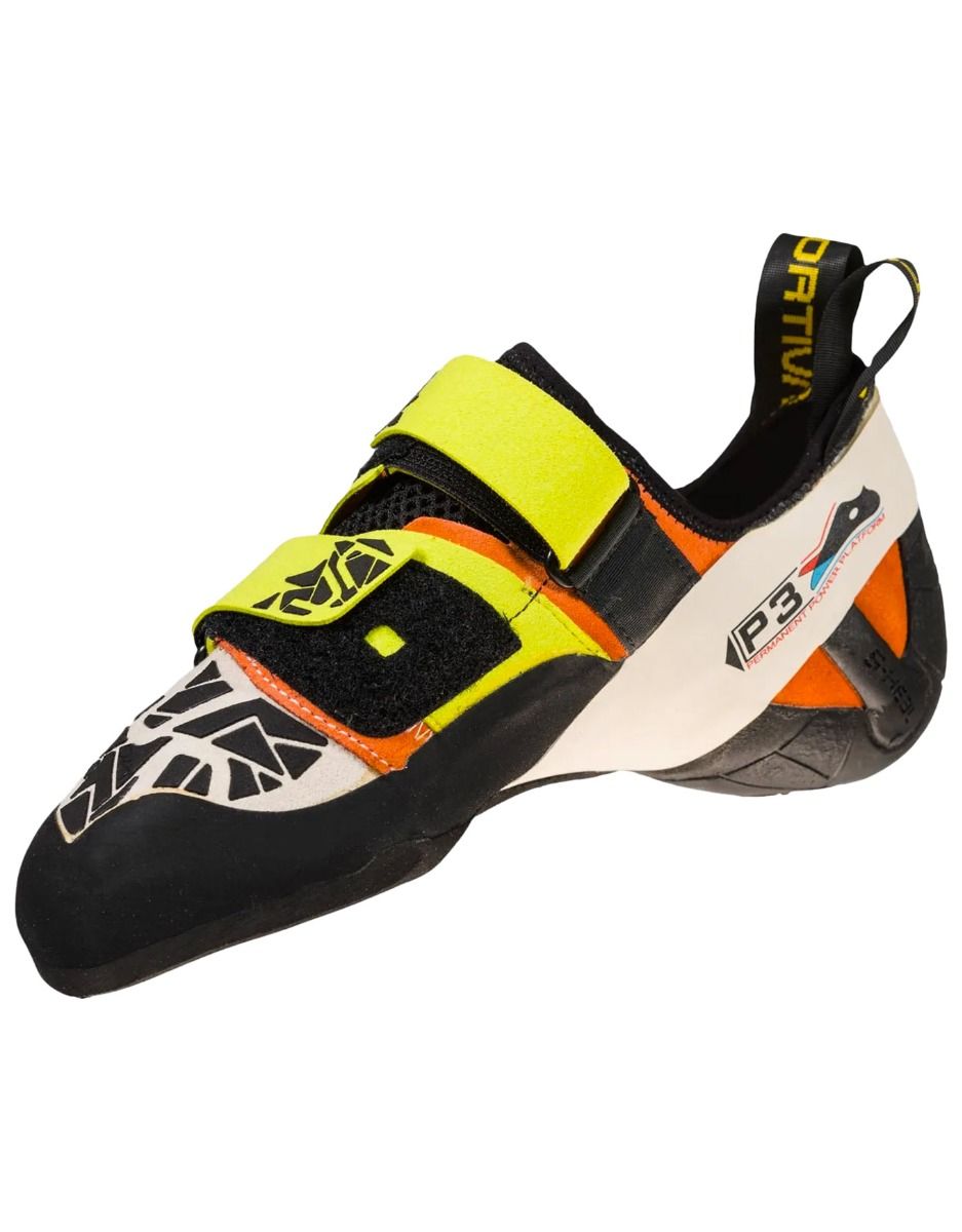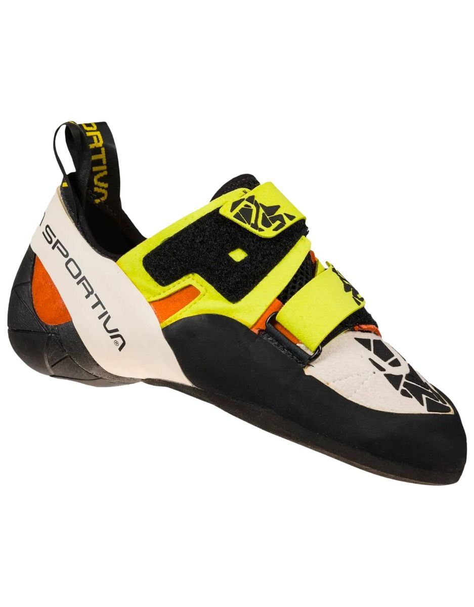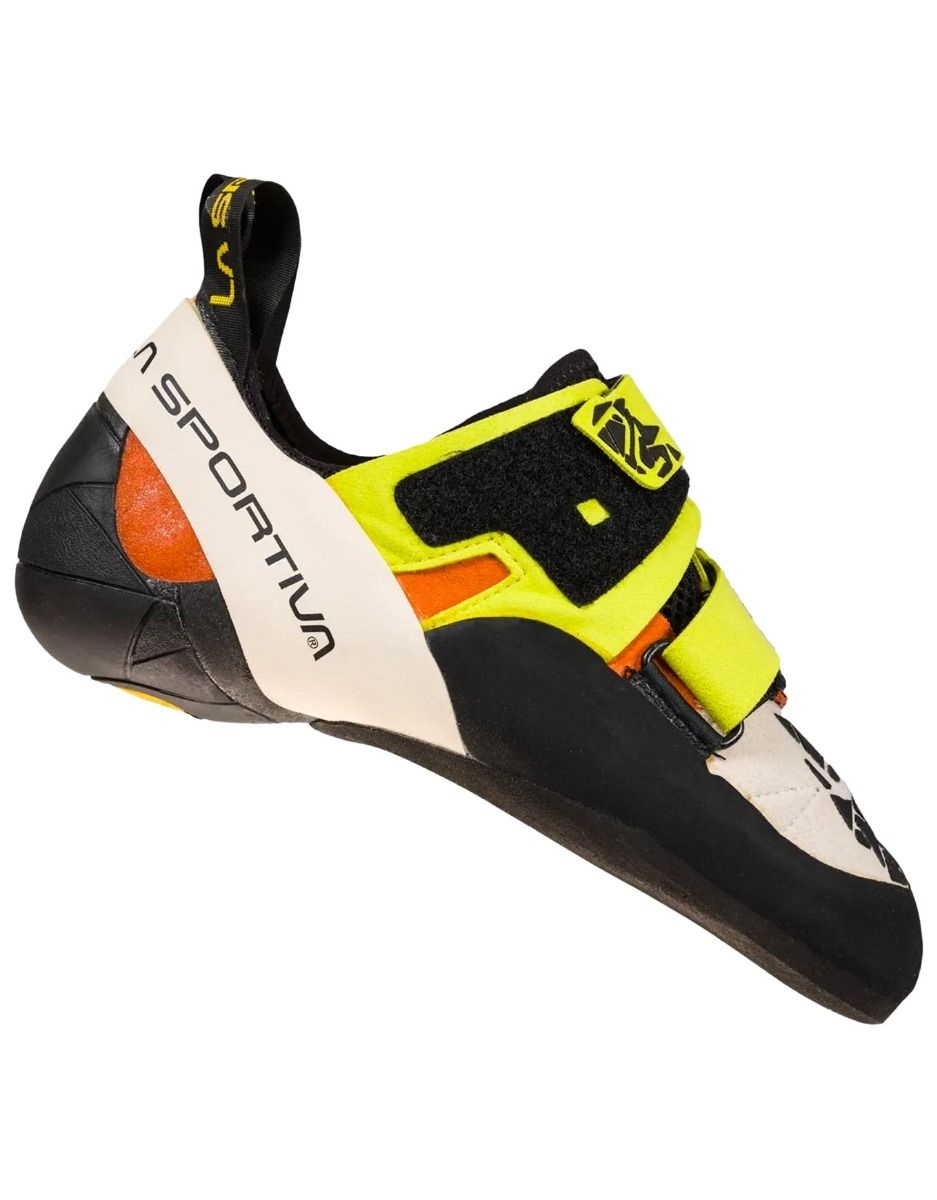 Chausson d’escalade femme La Sportiva Otiki, construction daim/microfibres pour un maintien de ballerine et la précision Velcro® ; semelle Vibram® XS EDGE avec P3 System, talon S-Heel™ breveté pour stabilité en bloc et voie.