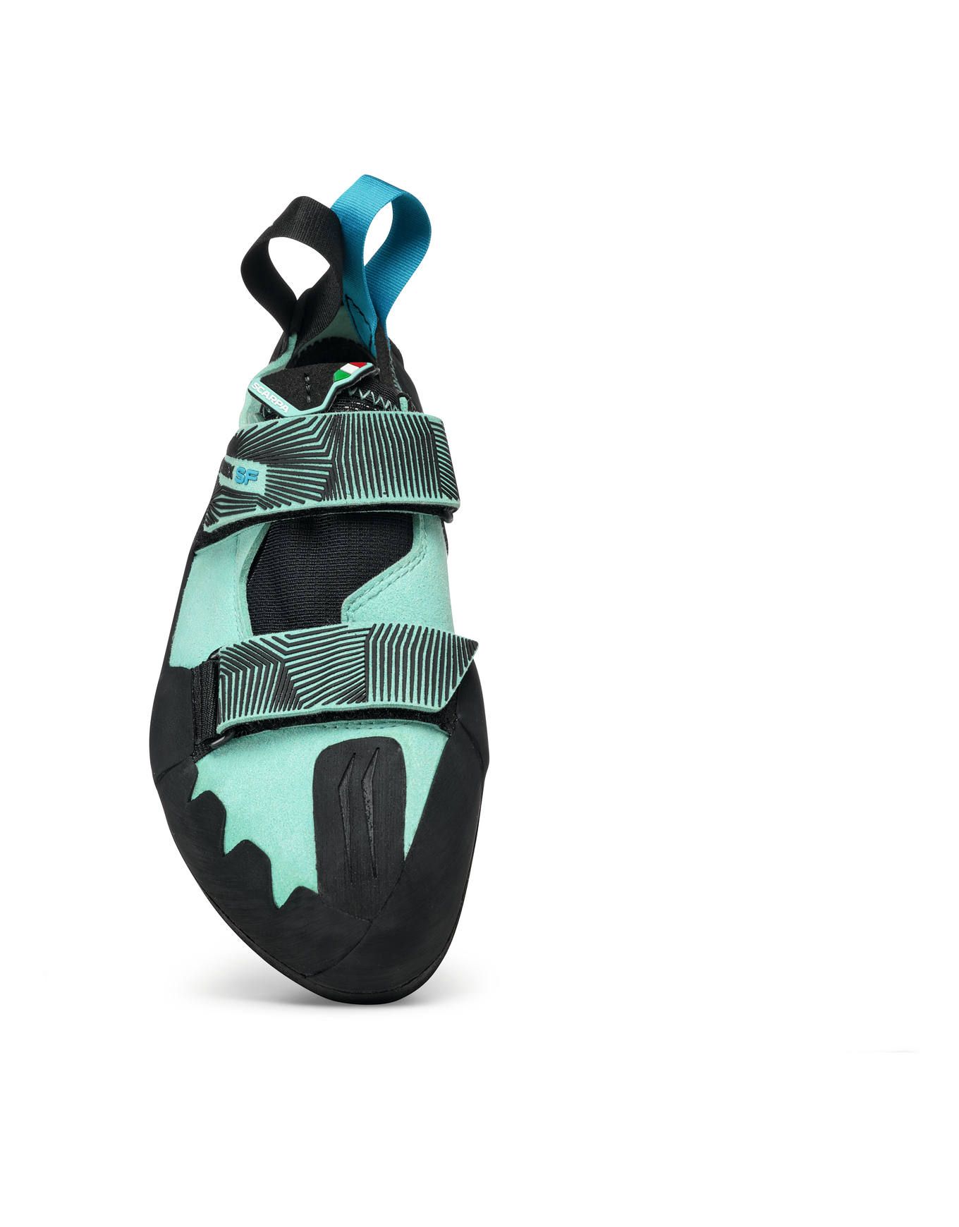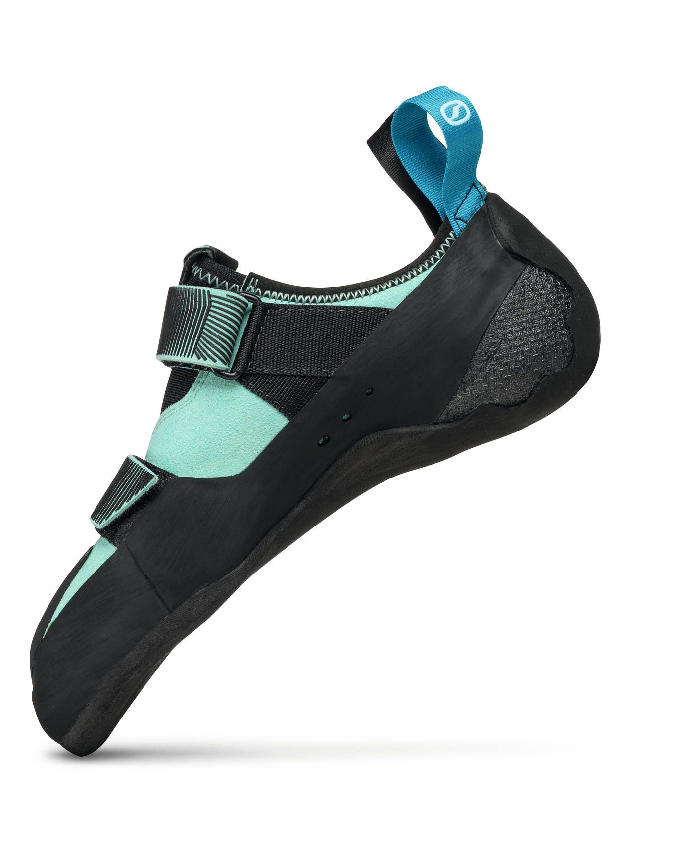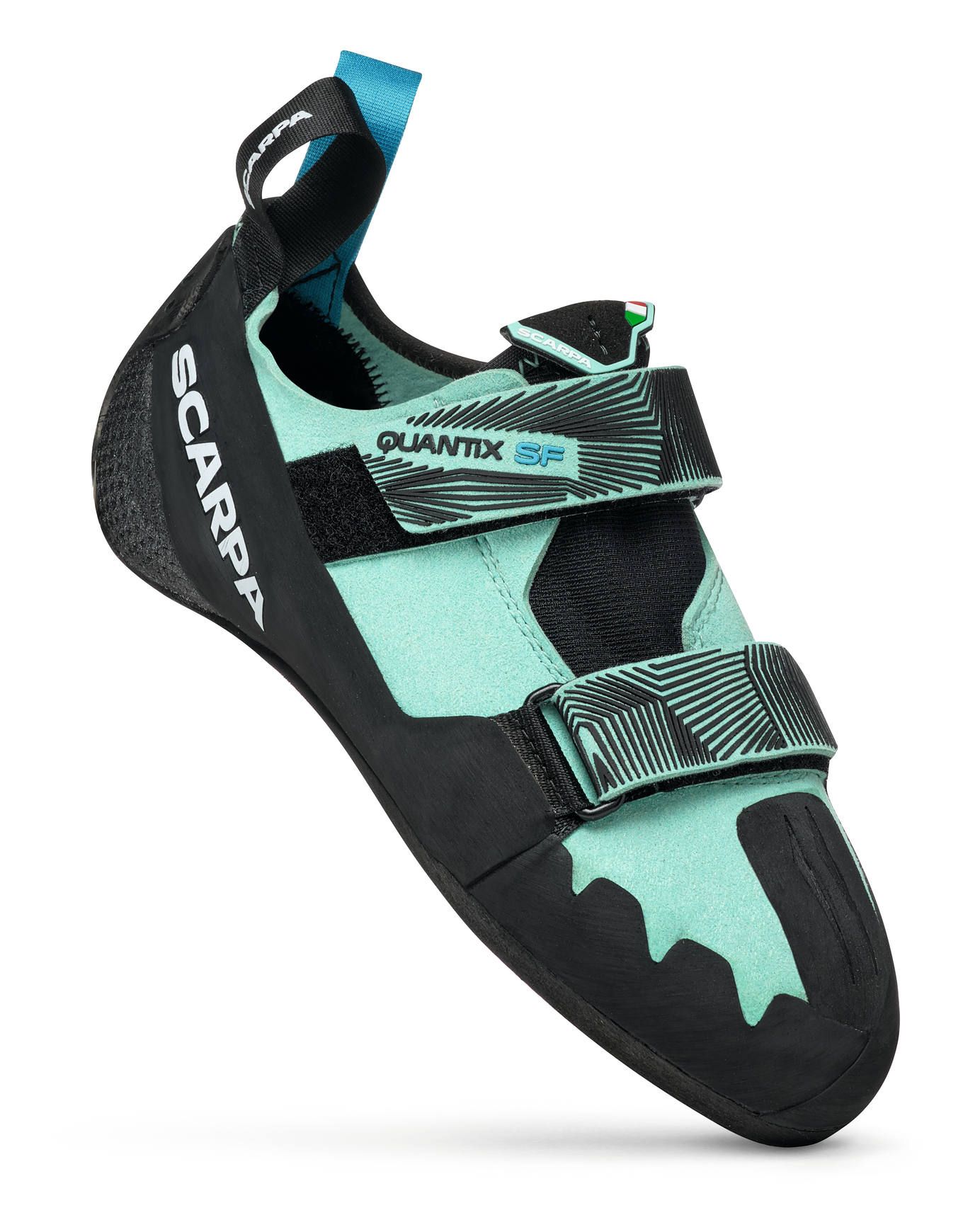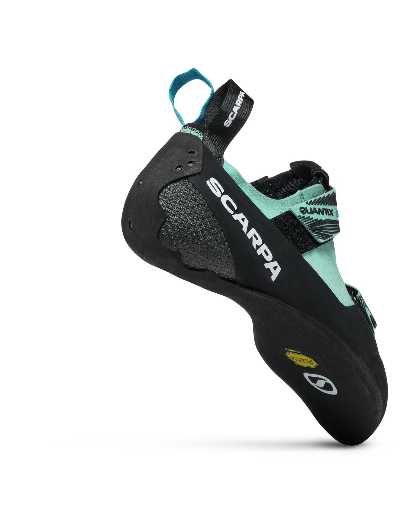 Chaussons d’escalade femme Scarpa Quantix SF Wmn conçus pour le bloc et la salle, dotés de la technologie Single Frame pour un maintien précis et d’une semelle Vibram XS Grip 2 offrant adhérence et flex dynamique.