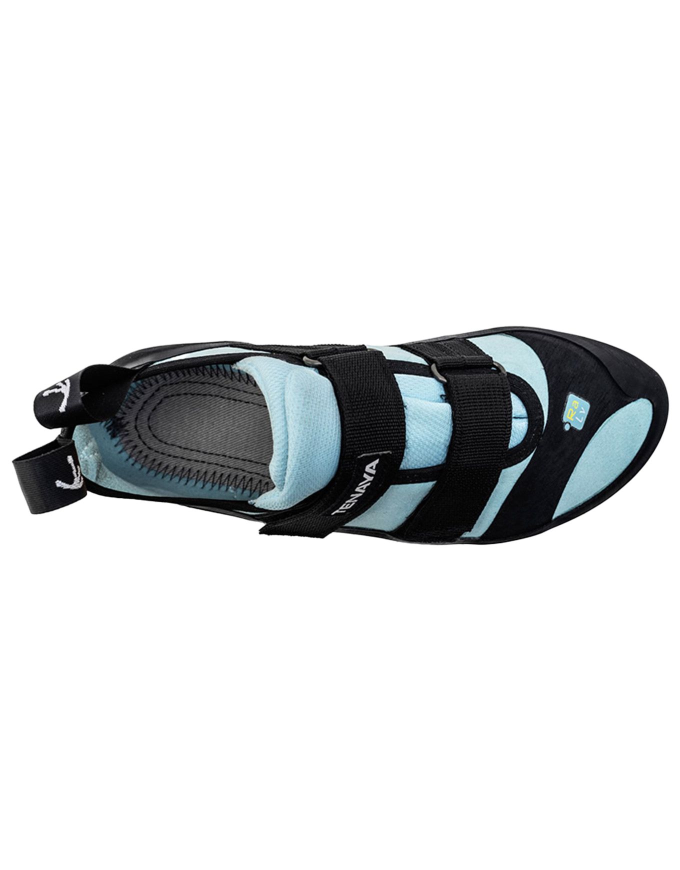 Chausson d’escalade femme Tenaya Ra Blue, semelle Vibram® monobloc et fermeture Velcro® pour précision et accroche sur falaise, bloc ou surplomb. Conception asymétrique adaptée à la morphologie féminine, rigidité intermédiaire offrant liberté de mouvement, confort et maintien.
