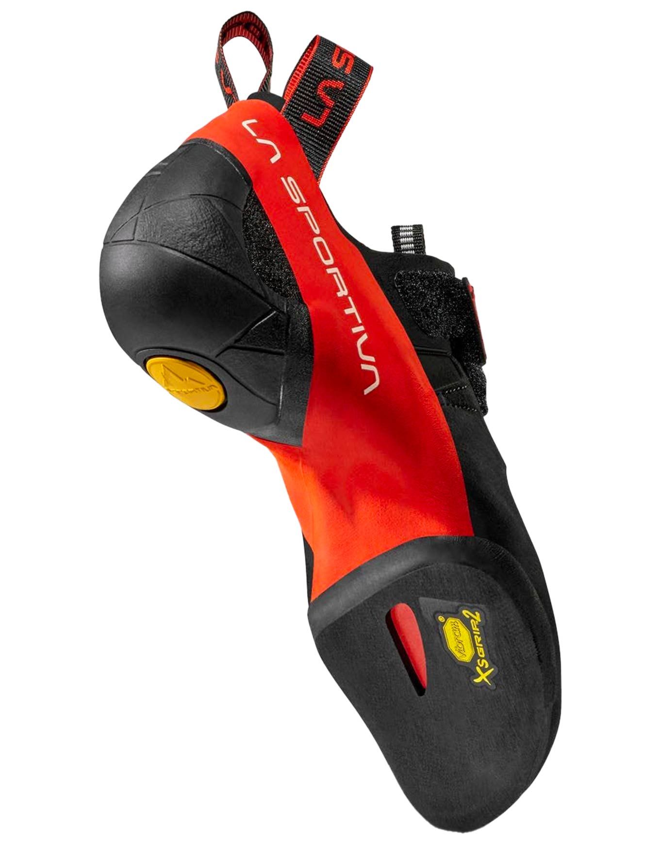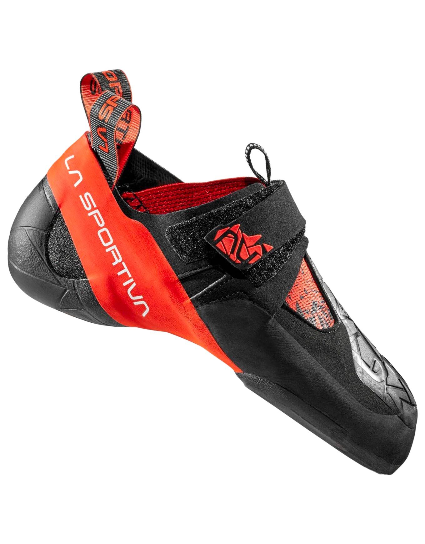 Chausson d’escalade La Sportiva Skwama Black/Poppy pour homme, performant en salle et en falaise. Empiècement daim/microfibres, coque S-Heel™ et semelle Vibram® XS Grip 2 pour confort, stabilité et adhérence maximale.