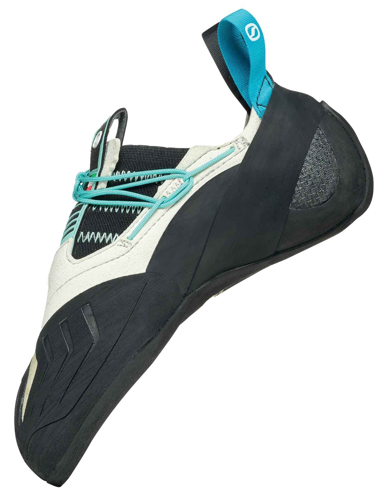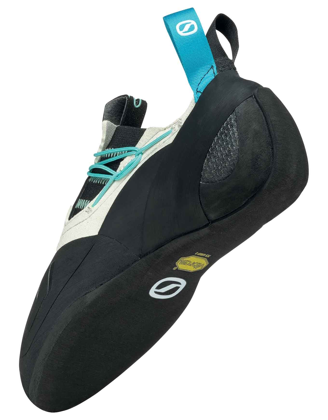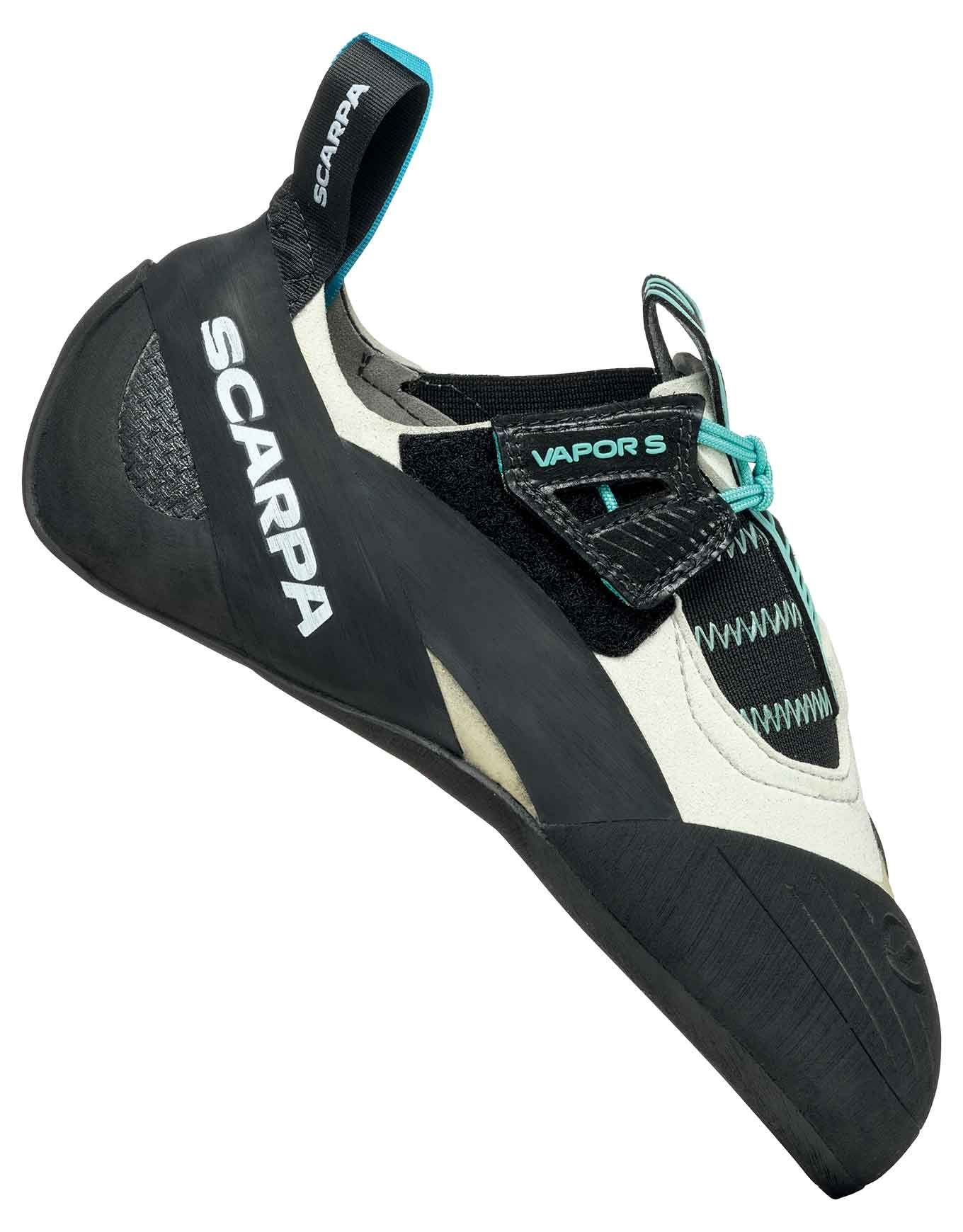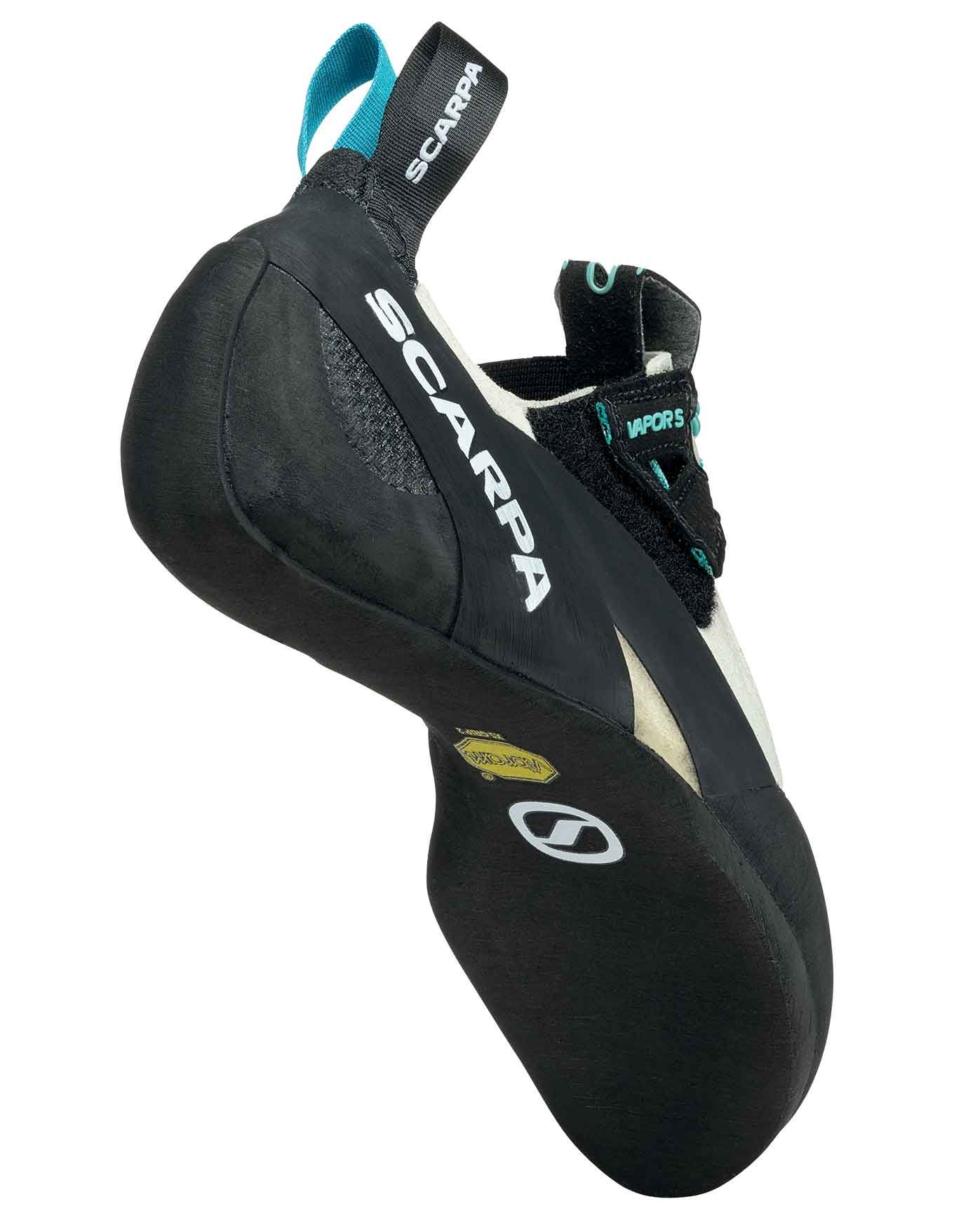 Chaussons d’escalade Scarpa Vapor S Wmn pour pieds fins, combinant puissance BI-Tension, adhérence Vibram XS Grip2 et fit réglable Nano Stap System pour performances précises en voie, salle ou bloc.