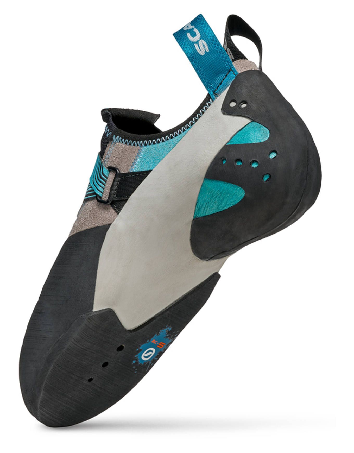 La semelle en caoutchouc S-72 offrant une résistance accrue ainsi qu’une adhérence constante sur volumes et prises d’intérieur. La conception de la tige privilégie un matériau respirant et peu encombrant, assurant une aération optimale du pied. Le système de fermeture Velcro inversé facilite l’enfilage rapide tout en permettant un ajustement fin de la tension.