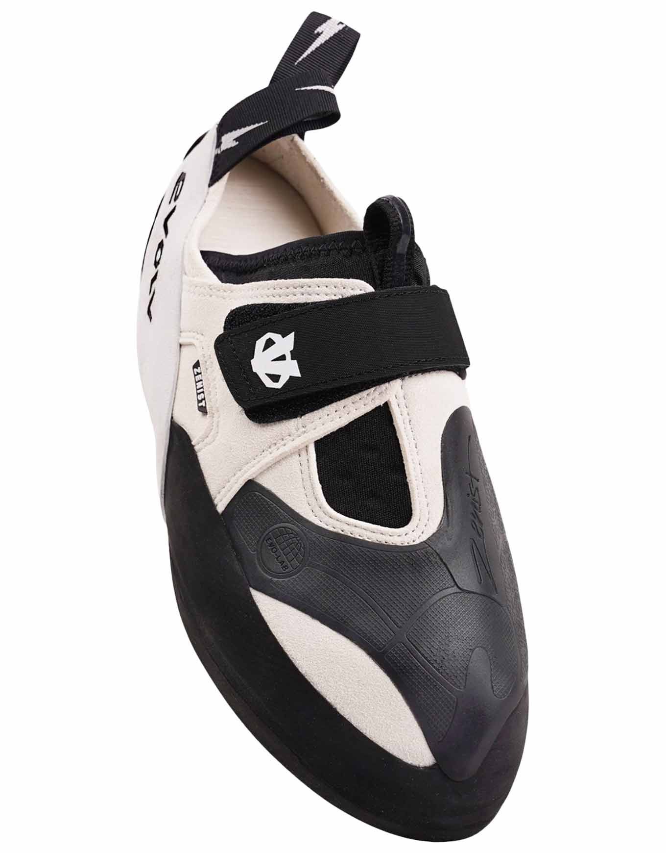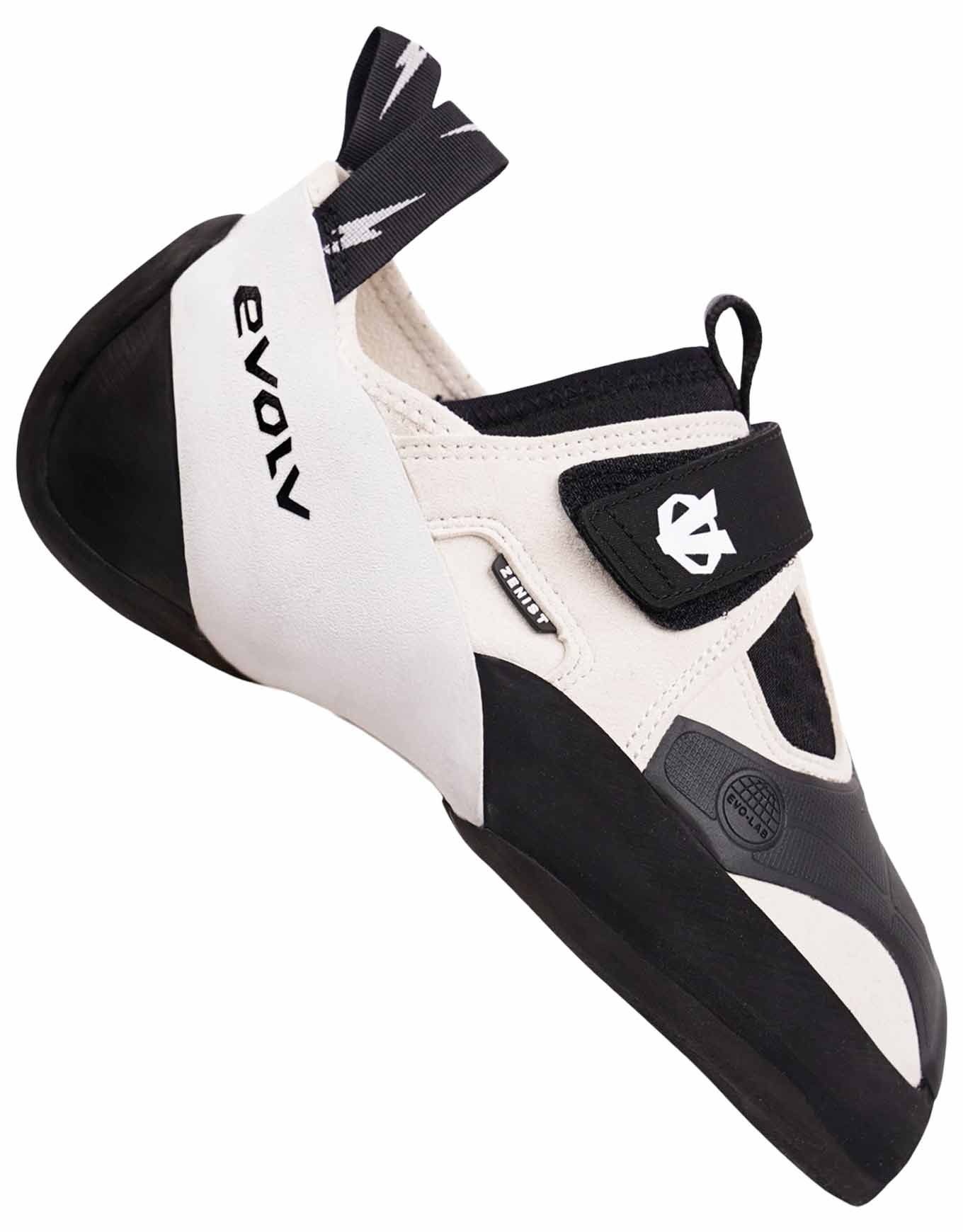 Chaussons d’escalade Evolv Zenist Gray/Black pour grimpeurs intermédiaires à confirmés, conçus pour la compétition et le bloc.