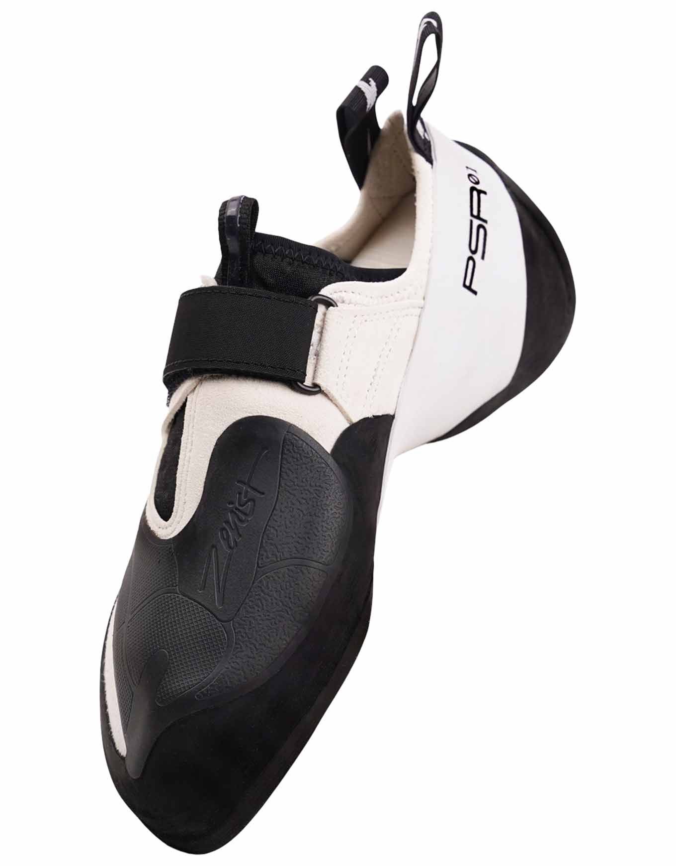 Précision, technicité et puissance d’appui caractérisent le Zenist lors de la charge, grâce à sa cambrure très marquée et sa construction asymétrique qui autorisent les crochets les plus délicats. Une tige en matière synthétique assure au chausson de conserver son ajustement au fil du temps sans se détendre.
