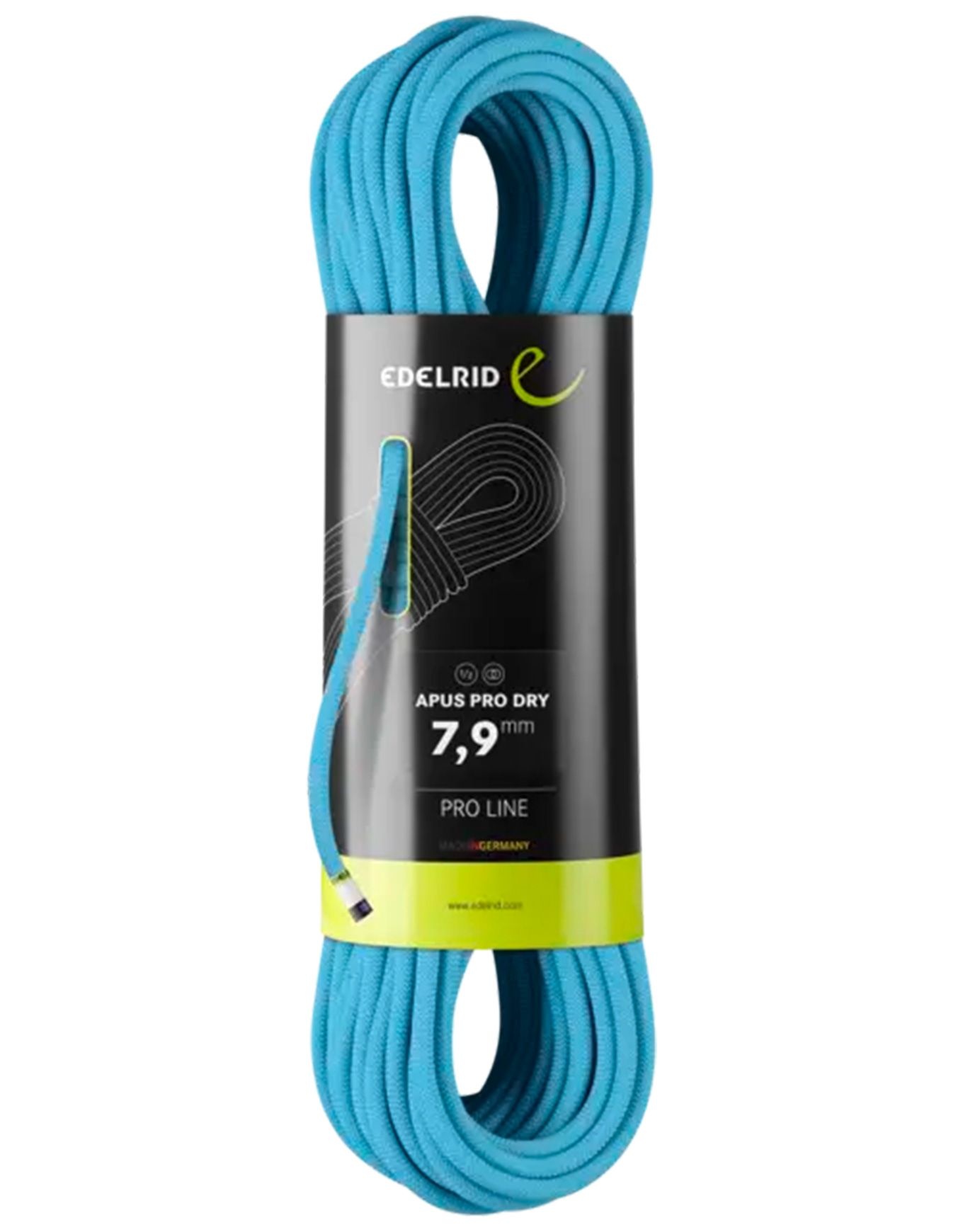 La corde Edelrid Apus Pro Dry 7,9mm est une corde d’alpinisme multi-normes, imperméable (traitement Pro Dry, norme UIAA <2% d’absorption), légère à 43g/m, dotée du Thermo Shield pour la souplesse et du 3D Lap Coil pour éviter les torsions.