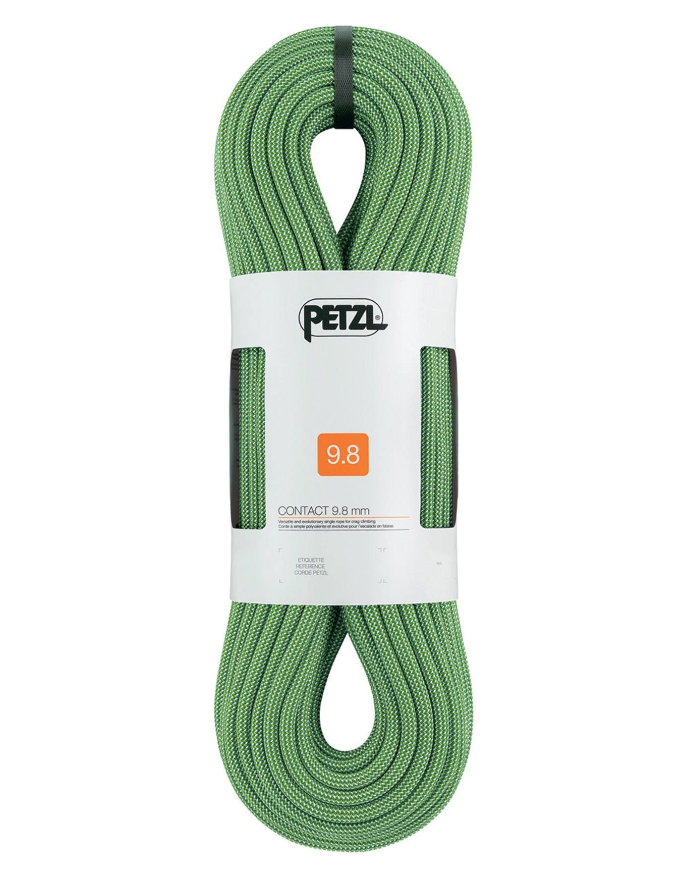 Corde à simple Petzl Contact Vert 9,8 mm, 60 g/m, combinant légèreté, durabilité et préhension pour l’escalade en salle et en falaise. Souple, maniable, avec Middle Mark et extrémités UltraSonic Finish.