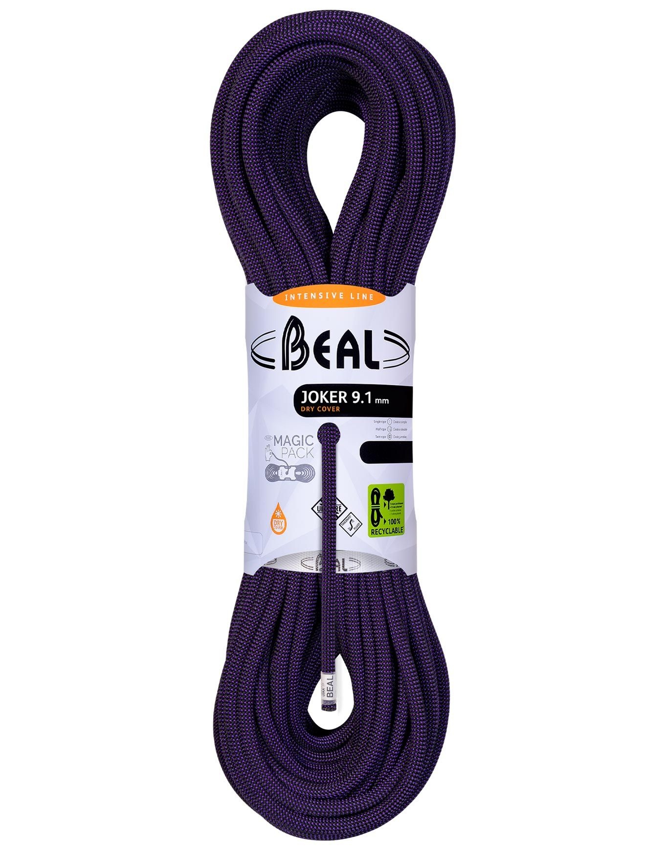 Conçue pour s’adapter à de nombreuses situations d’escalade, la corde Joker 9.1 mm Dry Cover de Beal se présente comme une corde simple, double et jumelée. Elle compte parmi les premières à satisfaire aux trois normes régissant les cordes dynamiques.