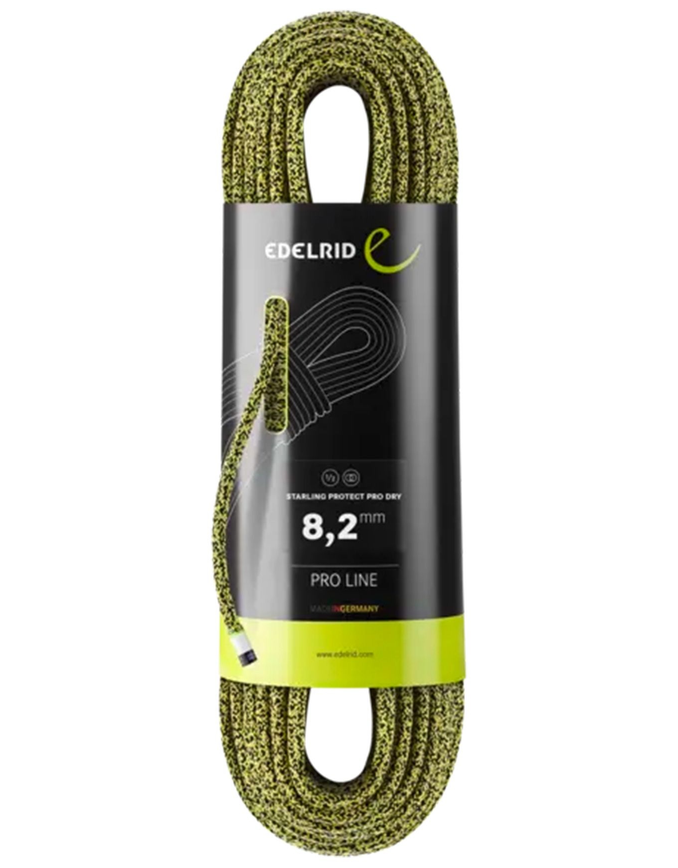 Corde d’escalade Edelrid Starling Protect Pro Dry 8,2 mm, multi-normes pour grandes voies et alpinisme. Traitement Pro Dry, Thermo Shield et 3D Lap Coil : imperméable, souple, sans vrille, résistante aux coupures.
