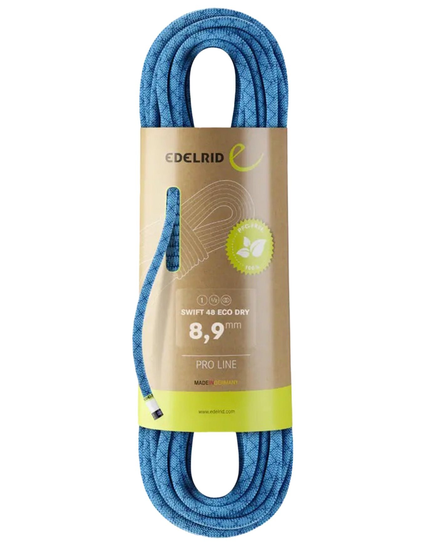 Certifiée pour l’emploi en corde à simple, double et jumelée, la Swift 48 Eco Dry 8,9mm Icemint d’Edelrid se présente comme une corde trois en un. Parmi les cordes à simple les plus fines disponibles, son diamètre de 8,9 mm offre une légèreté et une fluidité recherchées par les grimpeurs sur les voies les plus exigeantes.