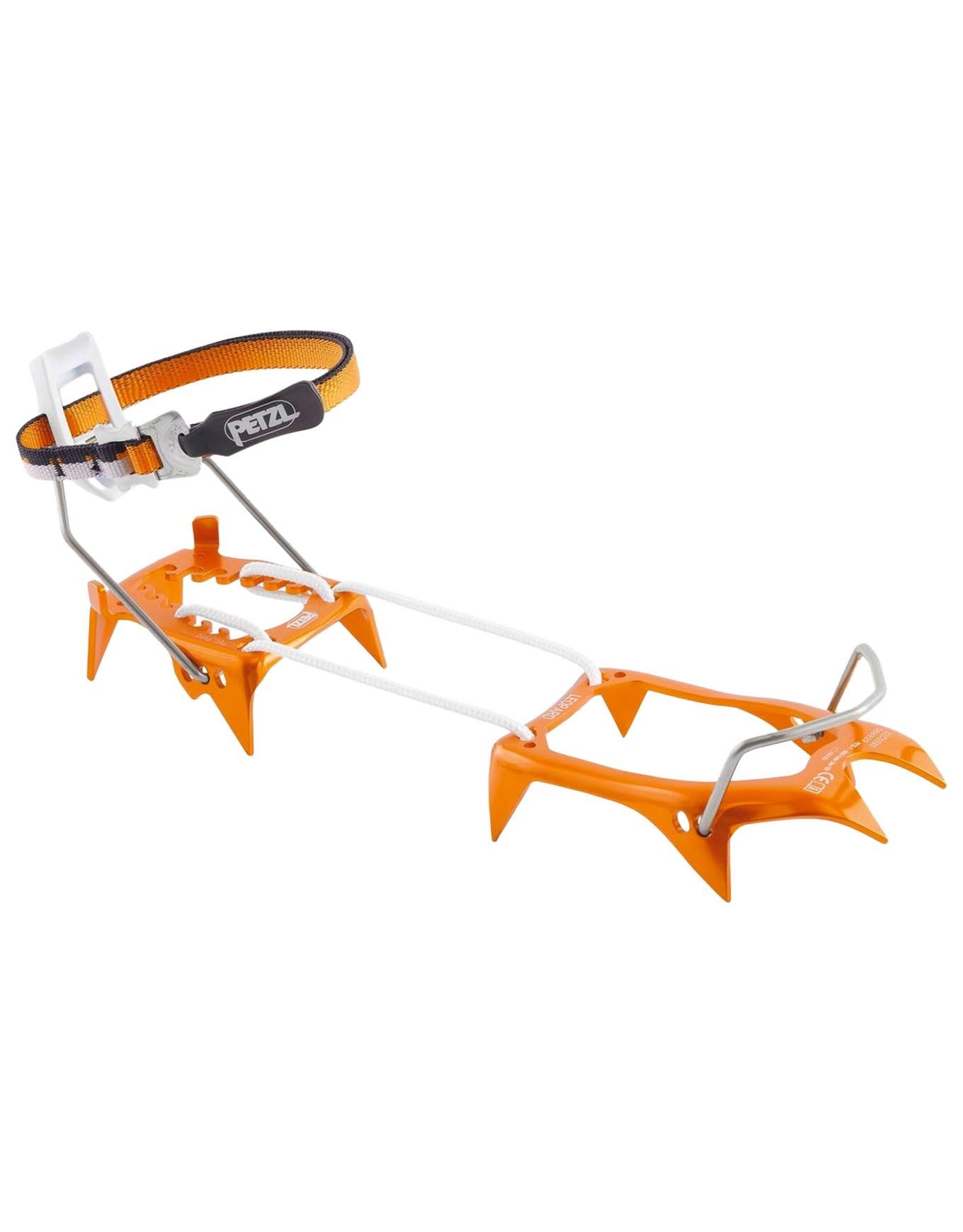 Crampons d’alpinisme Petzl Leopard Leverlock Fil en aluminium et liaison CORD-TEC polyéthylène, ultralégers et ultracompacts, 10 pointes pour stabilité sur neige dure, réglage sans outil du 36 au 46, compatibles ANTISNOW.