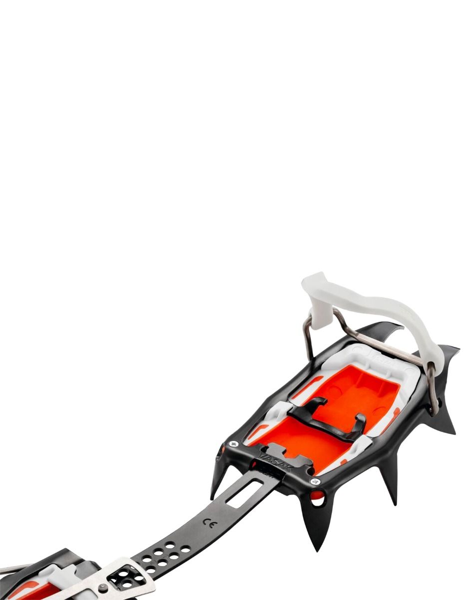 S’adapte à toutes les chaussures d’alpinisme et de randonnée glaciaire équipées d’un débord arrière ; ses éléments (FIL ou FLEX) assurent la compatibilité avec tous les types d’avants (avec ou sans débords).
