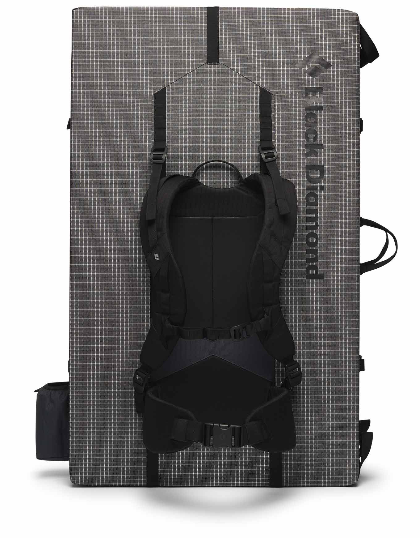 Black Diamond Erratic Crash Pad : tapis de réception d’escalade ultra-léger, coins renforcés, mousse multicouche haute absorption, portage sac à dos ajustable et attache multi-tapis pour sécurité maximale en bloc.