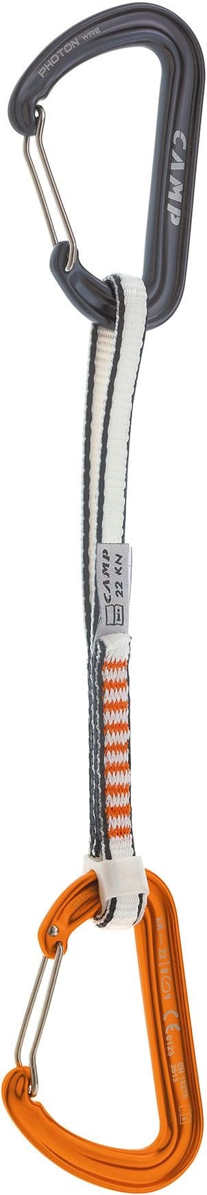 Conçue par Camp pour l’escalade sur falaise, la dégaine Photon Wire Express KS Dyneema constitue une version ultra-légère dotée d’une sangle en Dyneema®. Un stabilisateur en TPU intégré à la sangle, le Karstop Evo, assure une orientation parfaite du mousqueton côté corde, offrant ainsi durabilité, efficacité et fonctionnalité. Avec une ouverture supérieure dépassant de 25 % la moyenne des modèles ultra-légers, les mousquetons Photon Wire garantissent une performance optimale à chaque utilisation. Découvrir les collections Camp Camp Janja Découvrir les catégories associées Dégaines escalade Escalade/alpinisme