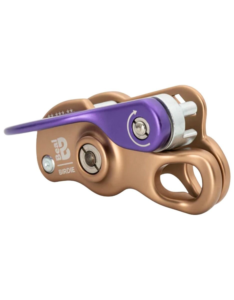 L’assureur compact Birdie de Beal, entièrement métallique avec came en acier inoxydable, offre freinage assisté pour l’assurage en tête ou en moulinette, compatible cordes 8,5-10,5 mm.