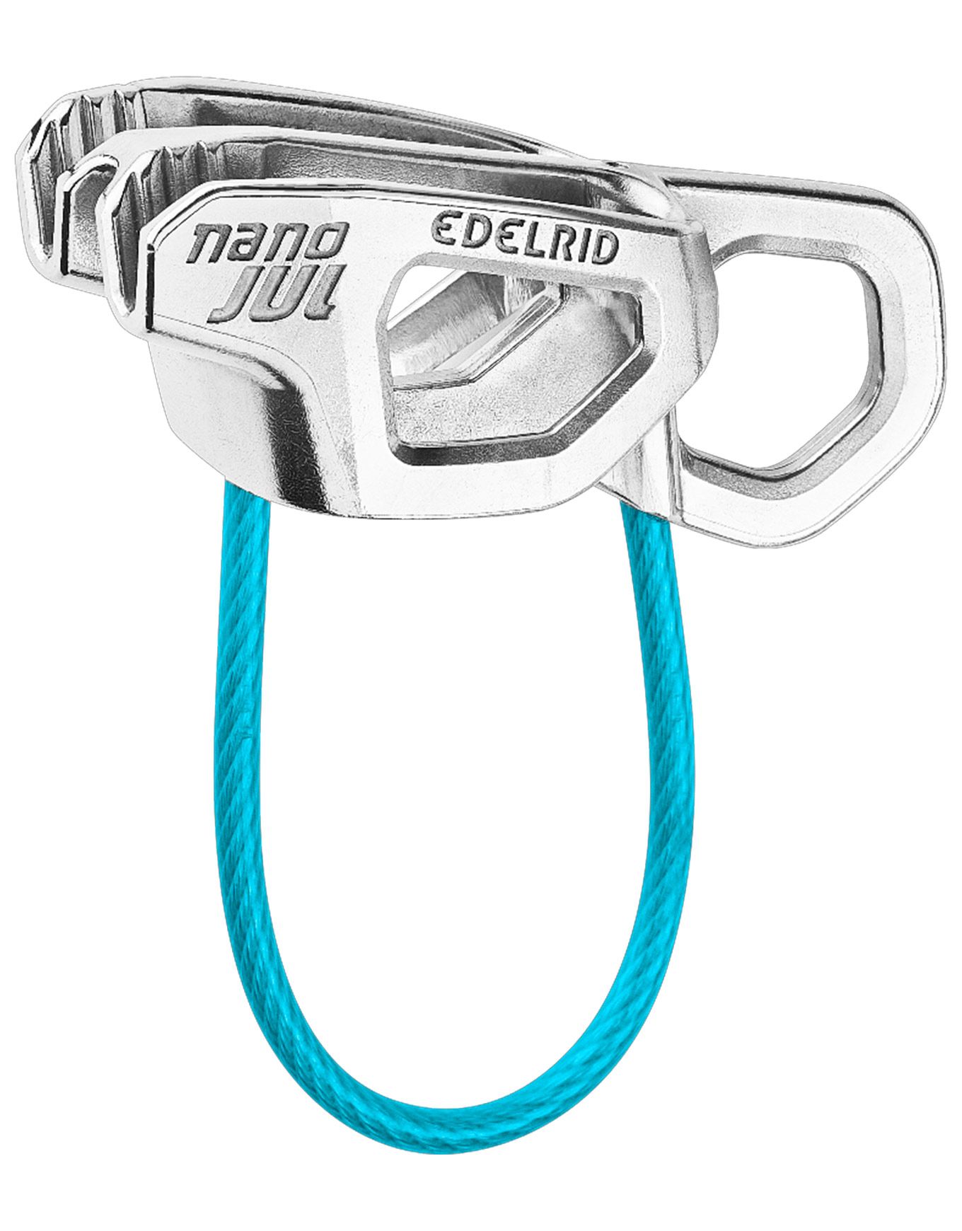Assureur Edelrid Nano Jul pour cordes à double ou jumelées fines, dispositif de freinage manuel léger en acier inoxydable, déblocage rapide par œillet, mode Guide inclus pour freinage optimal en alpine.
