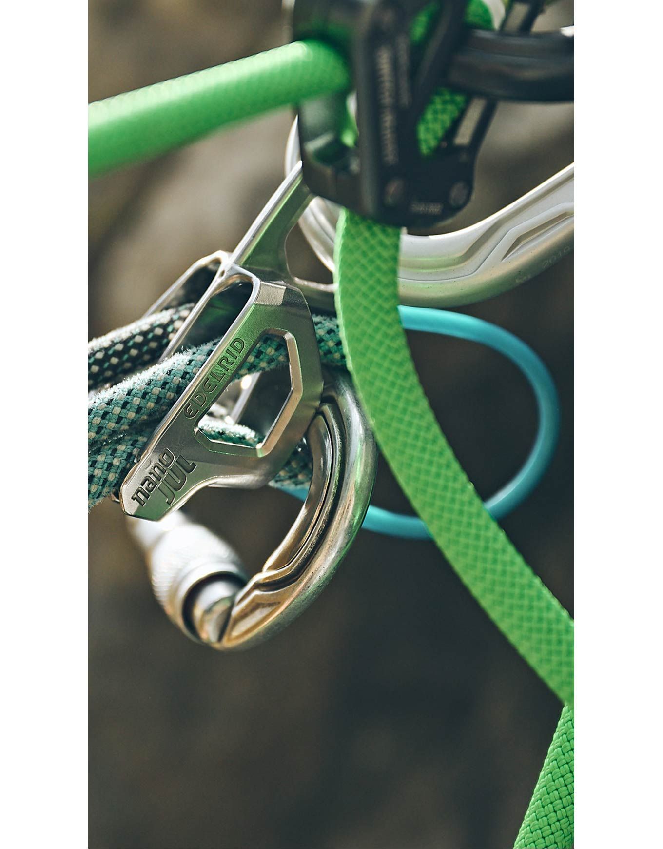 Pour ce qui est du maniement, la présence d’un œillet supplémentaire facilite le déblocage rapide de l’assureur au moyen d’un mousqueton. Le mode Guide intégré au tube s’avère particulièrement adapté aux courses alpines, assurant un freinage de qualité optimale. L’appareil permet d’assurer non seulement le leader, mais également un ou deux seconds. Le Nano Jul trouve également son utilisation dans les manœuvres de rappel.