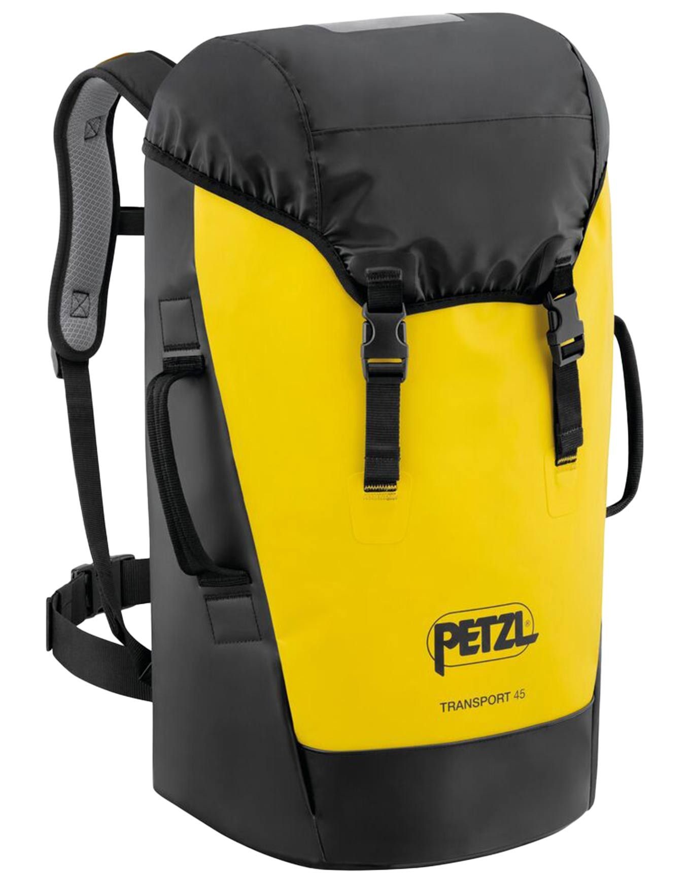Sac à dos spéléologie Petzl Transport 45L : volume 45 L en matière étanche soudée, rabat à double sangle, bretelles, ceinture et dos rembourrés, 2 poignées moulées pour un portage protégé et confortable.
