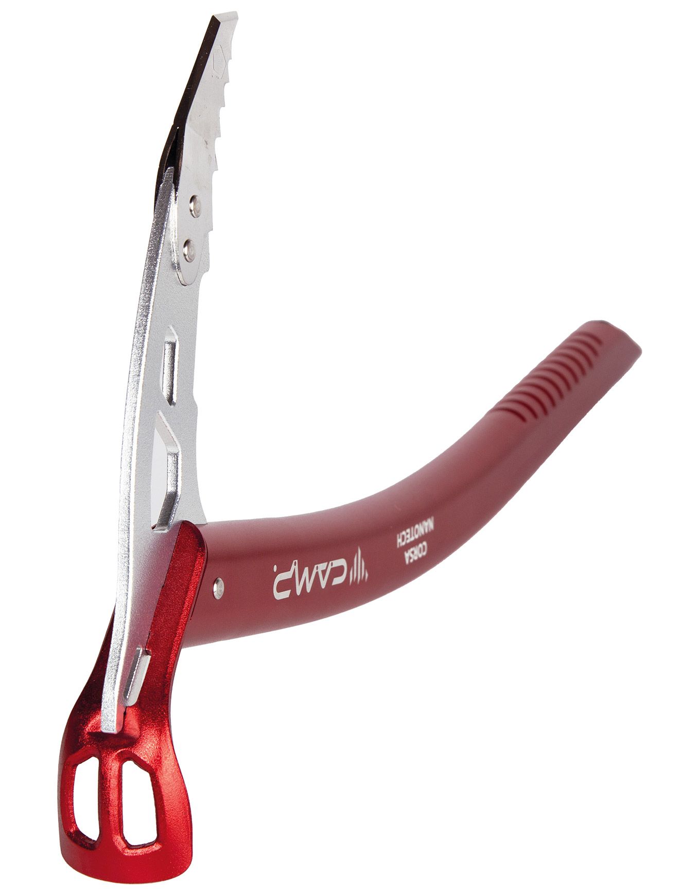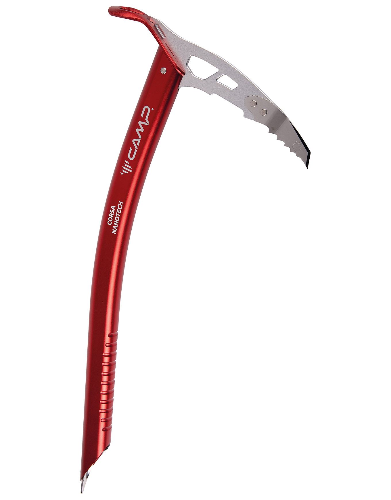 Le Corsa Nanotech de Camp est un piolet ultraléger en aluminium 7075-T6 renforcé d’inserts Alleima Nanoflex™ pour une résistance accrue à la tête et au pic, idéal pour la randonnée glaciaire et le ski-alpinisme.