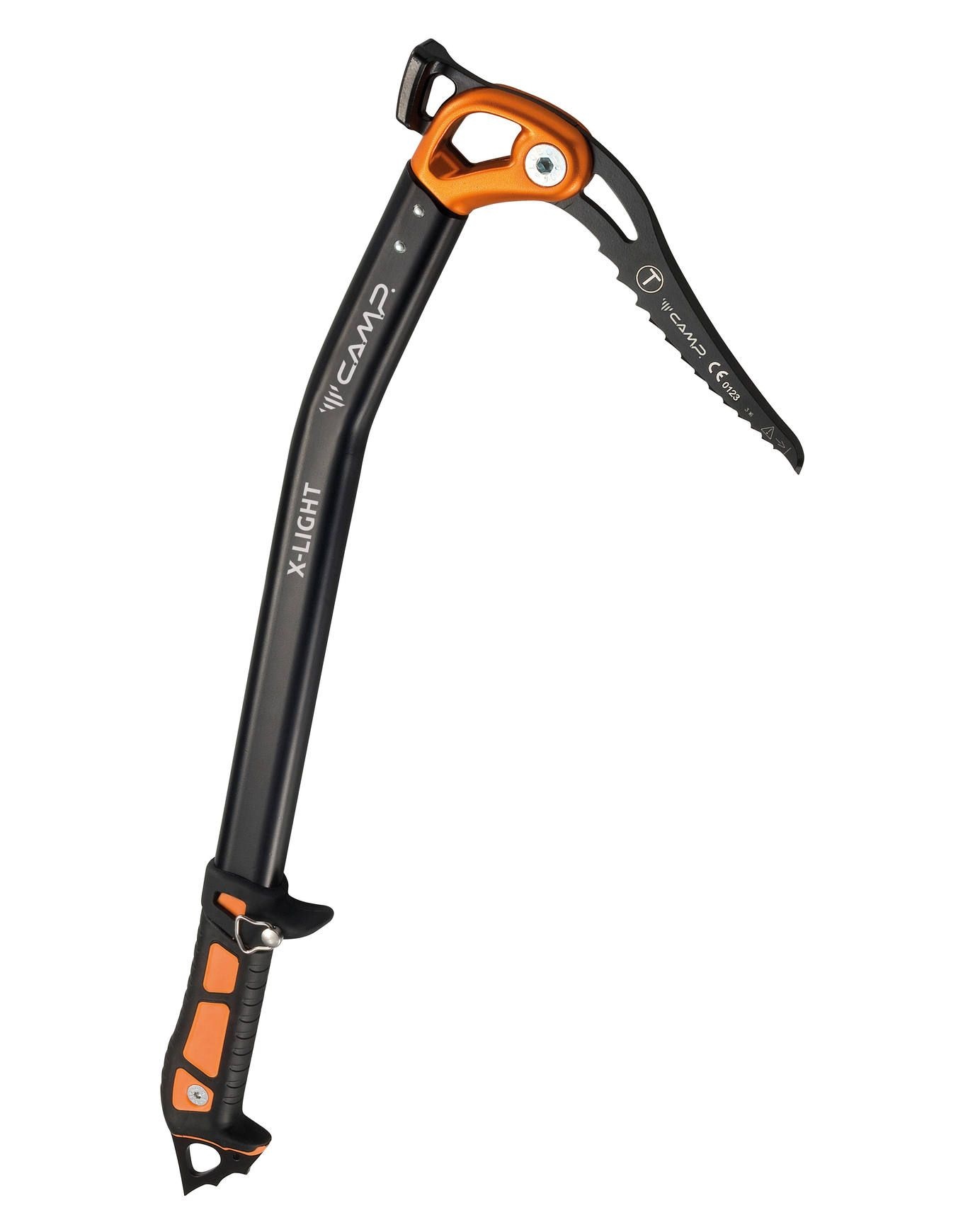 Piolet léger Camp X Light Hammer pour alpinisme et rando glaciaire, tête modulaire Avional lame/panne ou lame/marteau, poignée aluminium 7075-T6 réglable et démontable.