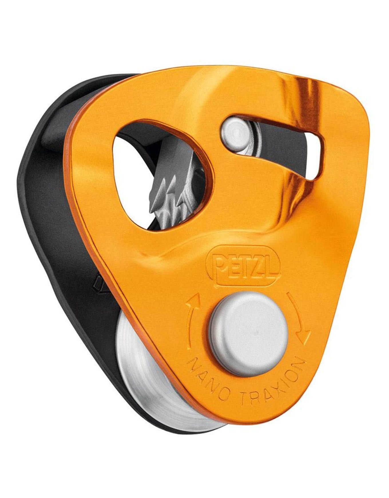 Poulie de blocage Petzl Nano Traxion, ultra-légère 53 g, rendement optimisé par roulement à bille étanche, compatible cordes 7-11 mm, idéale sauvetage.