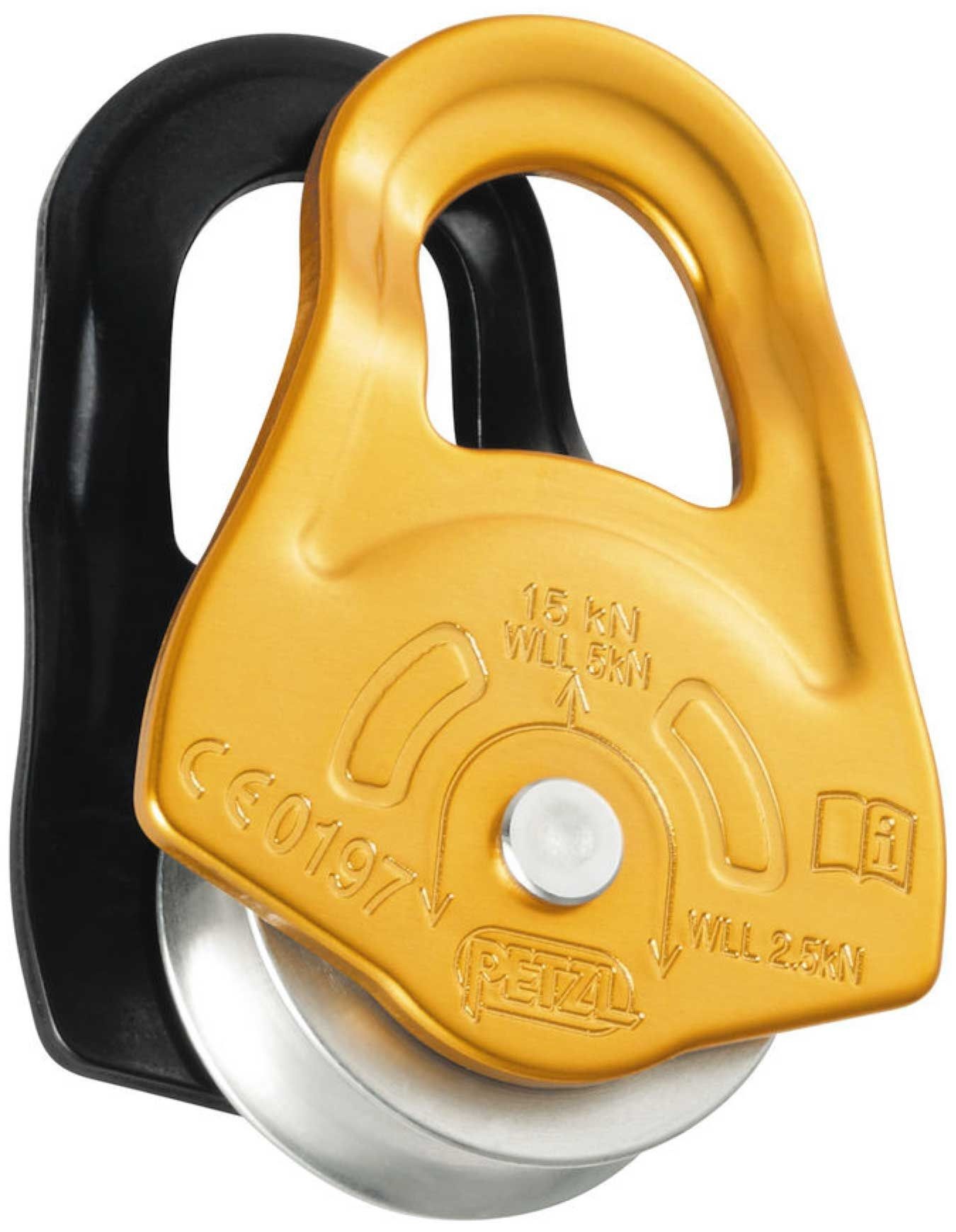 Poulie Petzl Partner ultra-compacte et ultra-légère, conçue pour les travaux en hauteur et les opérations de secours.