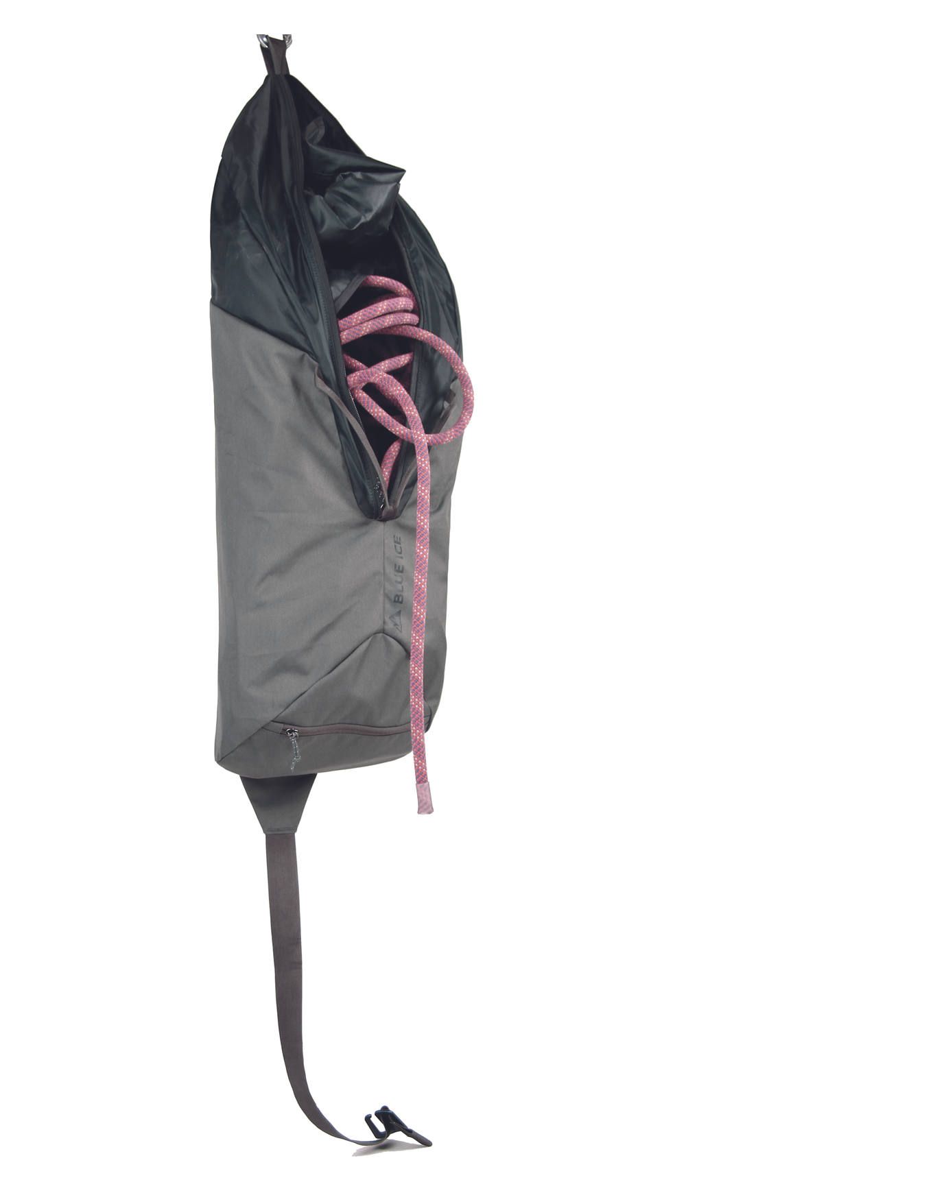 Sac à corde Blue Ice Koala Urban Chic 26 L pour grimpeurs salle et falaise, avec boucles d’attaque rapide, poche zippée pour topo et sangle réglable pour port épaule ou dos.