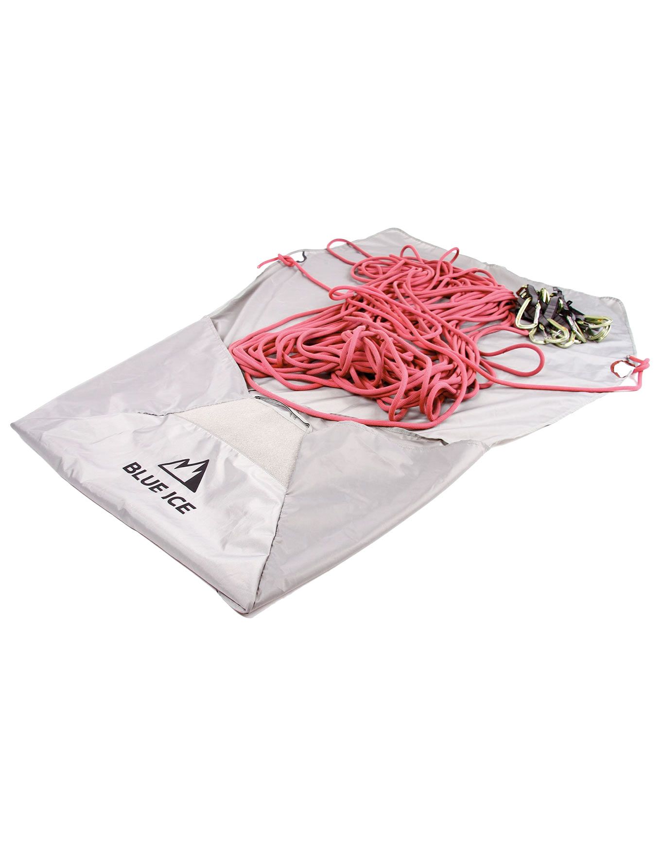 Sac à corde Blue Ice Rope Tarp convertible en bâche pour transporter et protéger votre corde sur les sites d’escalade, certifié Bluesign® sans PFC, avec poignées de transport, fermeture velcro et zone d’essuyage des pieds.