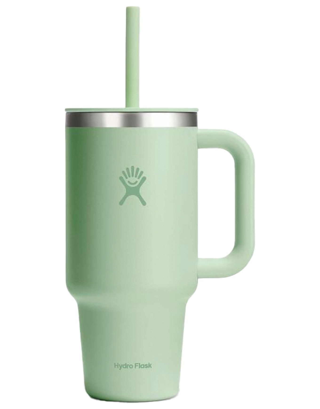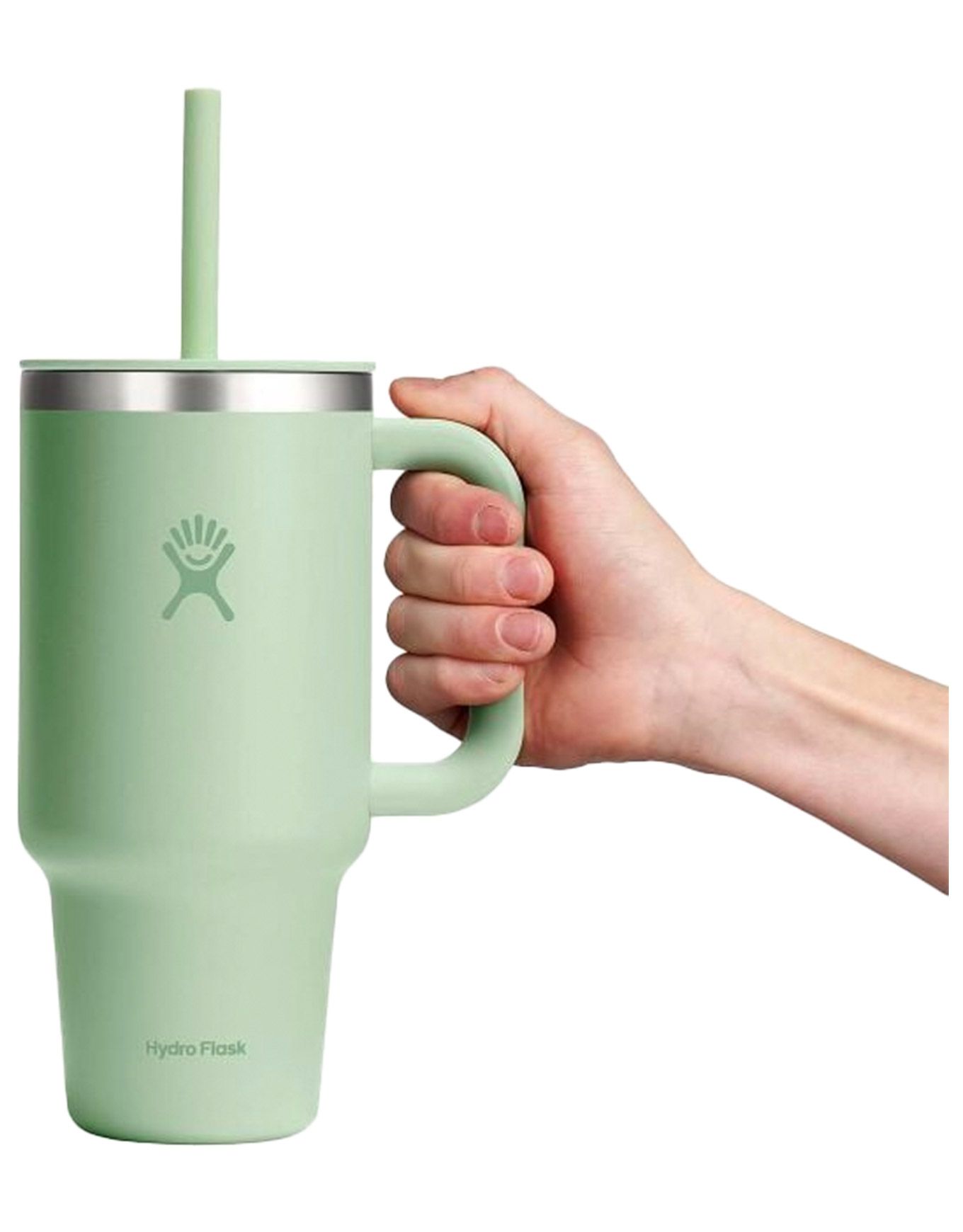 Le gobelet de voyage 32 Oz All Around Travel Tumbler Aloe de Hydroflask garde l’eau fraîche 24 h ou le thé chaud 12 h grâce à l’isolation TempShield®, sans BPA, avec couvercle à paille anti-éclaboussures et acier coloré durable.