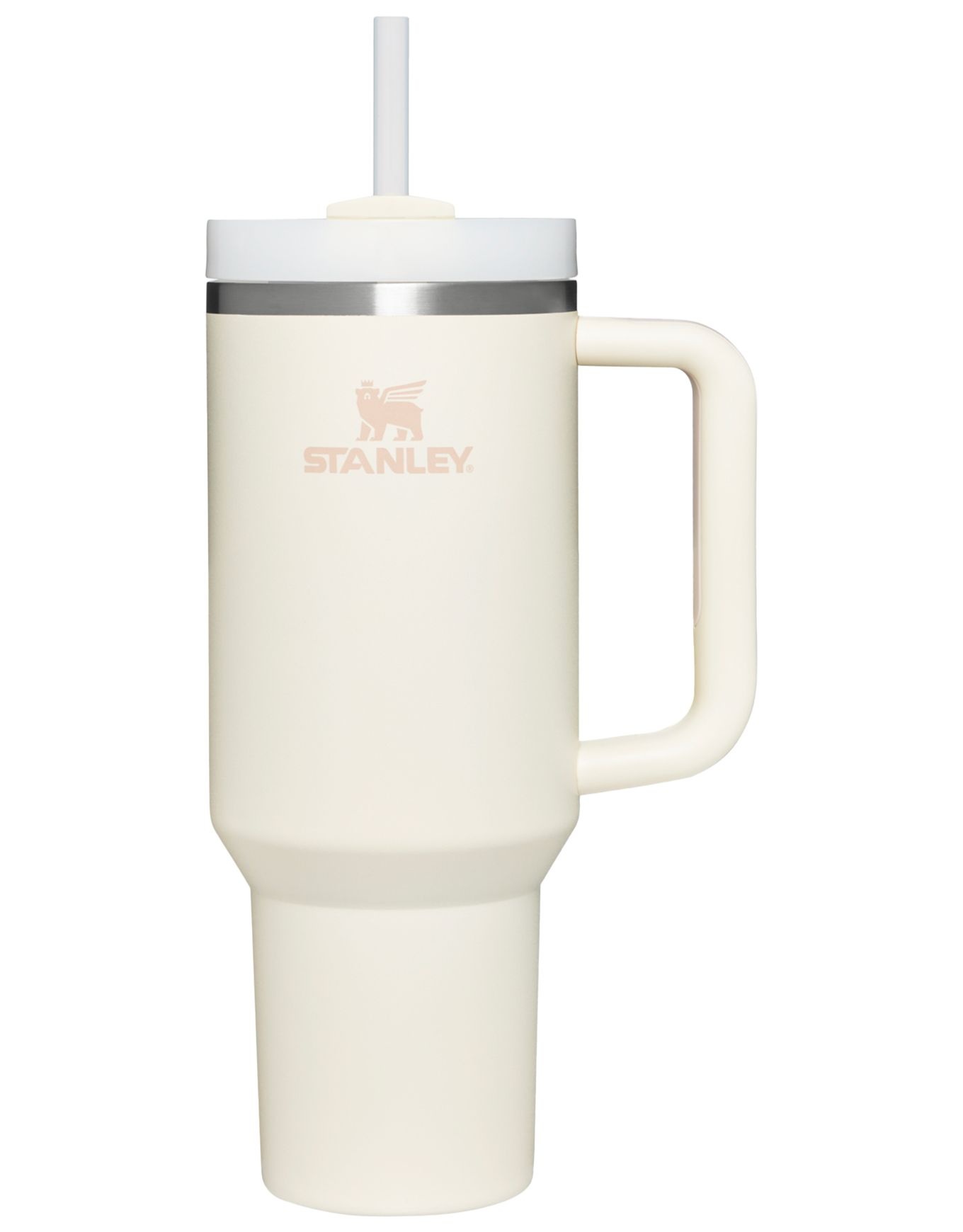 Le gobelet Stanley The Quencher H2.O FlowState™ Tumbler 1,18 L Cream 2.0 en acier inoxydable recyclé garde l’eau froide 11 h, 2 jours si glacée, et se nettoie intégralement au lave-vaisselle.