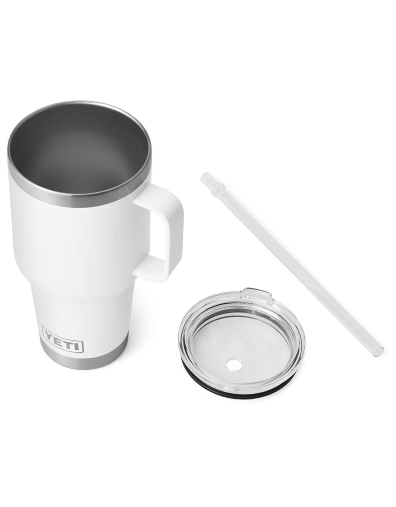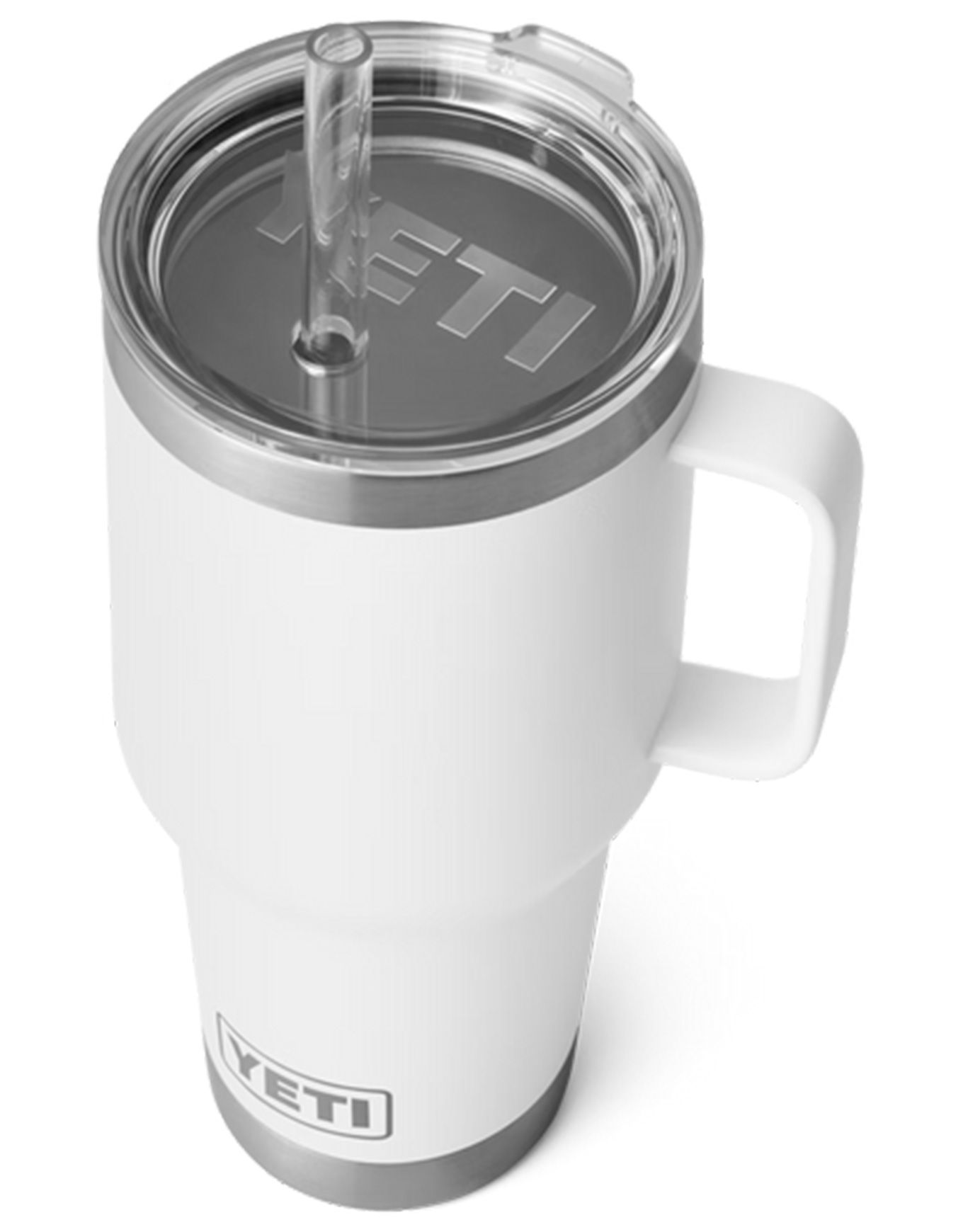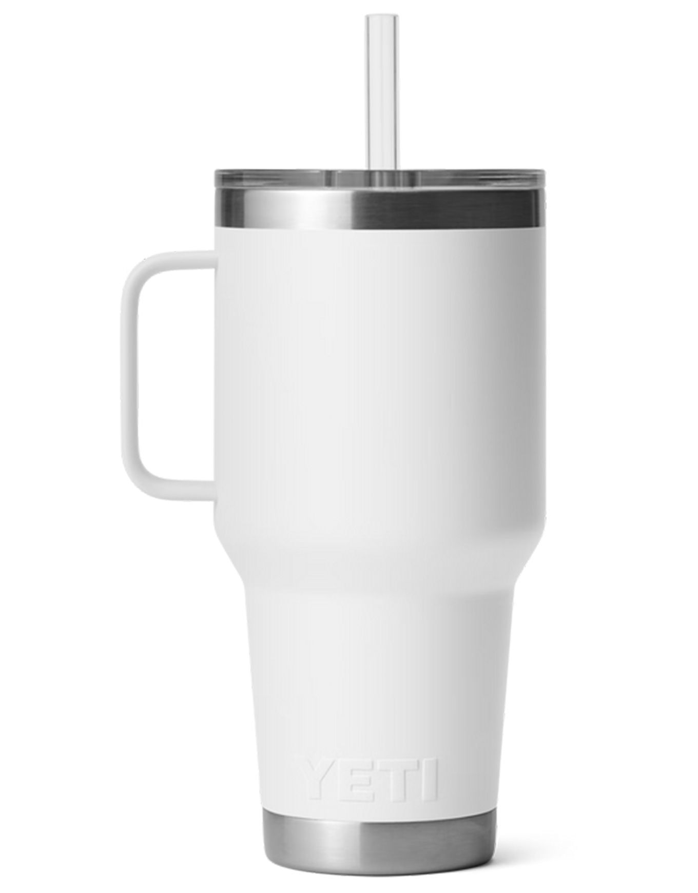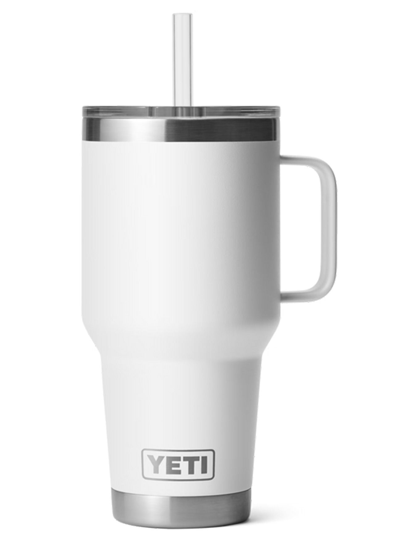 Yeti Rambler 35 Oz Straw White : tasse isotherme en acier 18/8, double paroi sous vide, garde les boissons fraîches des heures. Couvercle paille BPA, poignée surélevée, lave-vaisselle, compatible porte-gobelet.