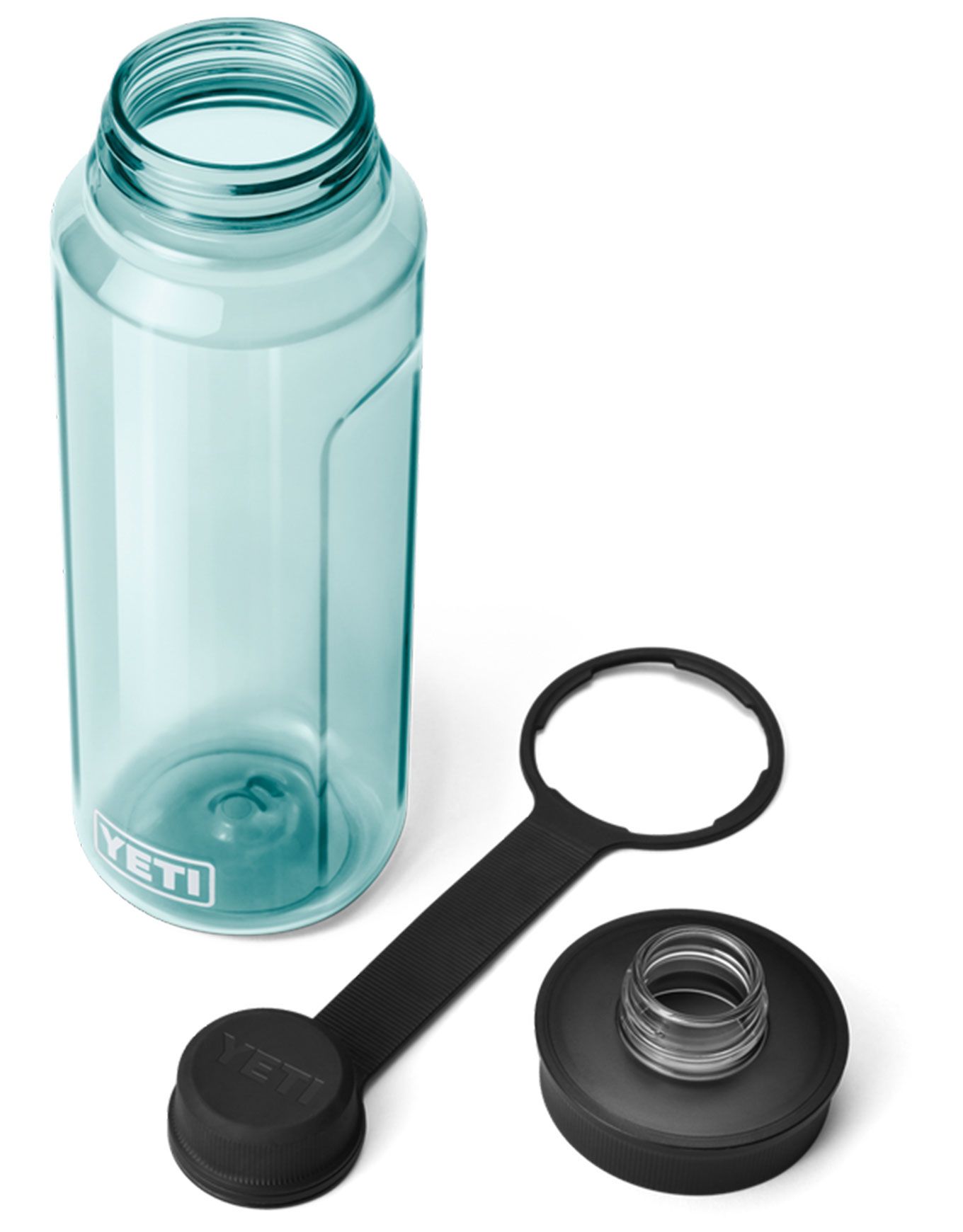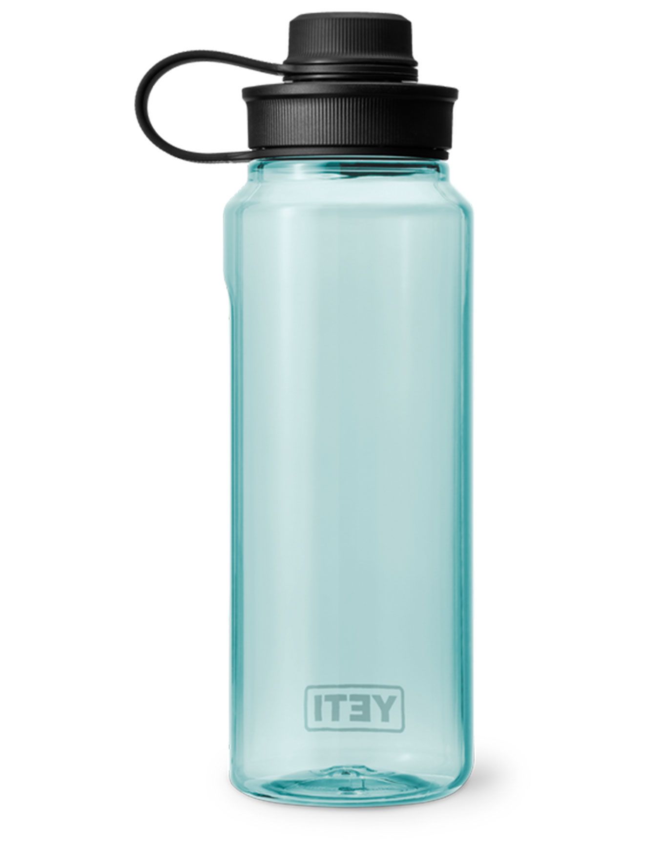 Yeti Yonder Tether 1L Water Bottle Seafoam : bouteille d’eau légère en plastique recyclé, résistante aux chocs, avec bouchon Yonder™ étanche et sangle intégrée pour un transport facile en randonnée ou au quotidien.