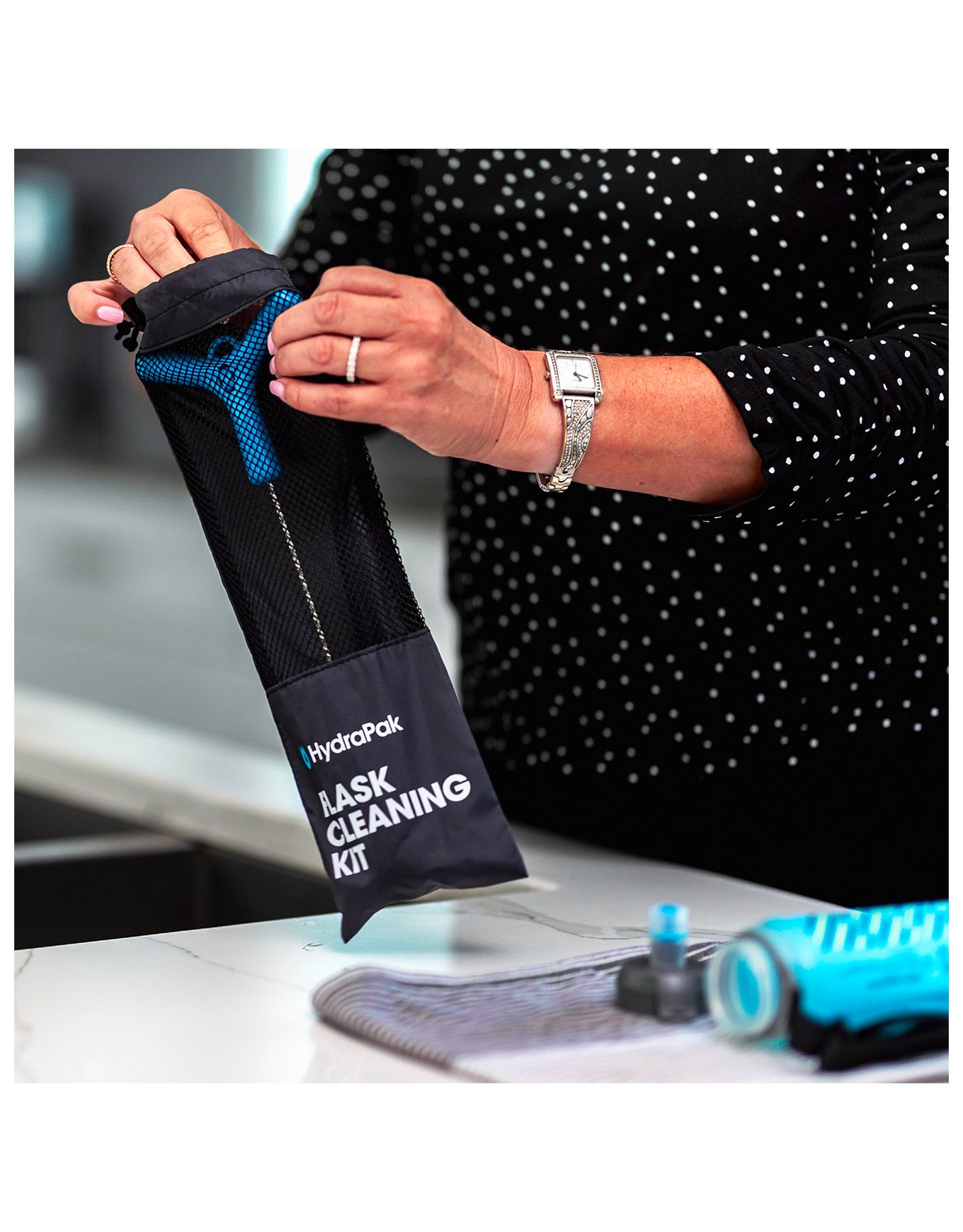 Hydrapak vous propose ce set 2-en-1 pour laver et faire sécher votre gourde ou votre flasque favorite. Petit et malin, l’ensemble d’entretien simplifie le nettoyage de vos réservoirs d’hydratation : la tête en poils souples pénètre dans les moindres recoins et la poignée tri-doigts, dont un repliable, assure une prise bien stable. Une fois le rinçage terminé, retournez la brosse : elle devient un support aérateur sur lequel poser votre récipient, qui sèche en un clin d’œil. Le tout se range dans son étui nylon, pratique pour transporter la brosse sans risquer de l’endommager. Indispensable pour entretenir en profondeur et faire sécher rapidement gourdes, bidons et bouteilles. Découvrir les catégories associées Poches à eau et flasques Hydratation