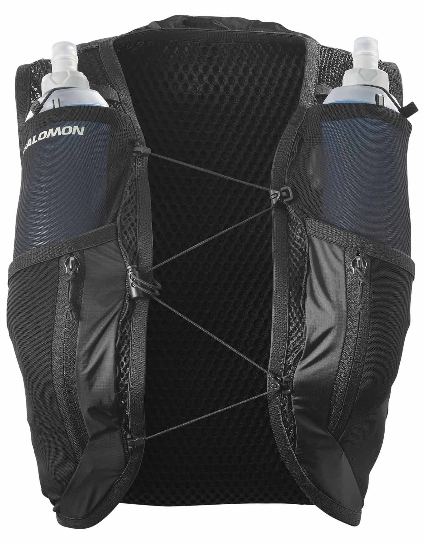 Sac à dos de trail running Salomon Active Skin 12 Women Set : construction Sensifit™ spécifique femme, 245 g, 12 L, accès frontal aux flasques, porte-bâtons Custom Quiver.