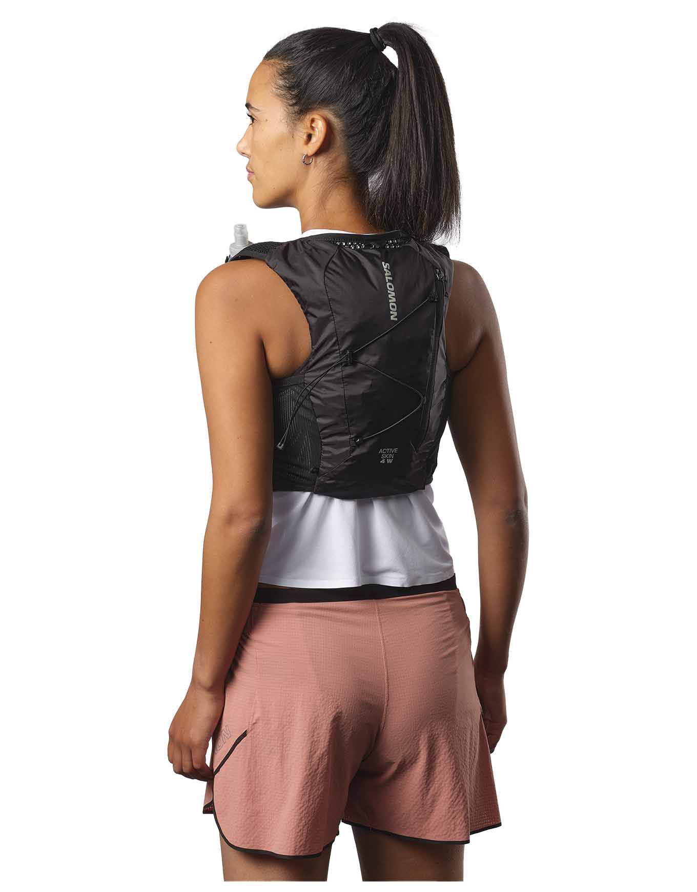 Le sac à dos de trail running Salomon ADV Skin 4 Women Set Black, d’un poids de 197 g et d’une capacité de 4 L, offre une construction Sensifit™ adaptée à la morphologie féminine pour un maintien proche du corps et une liberté de mouvement maximale. Deux porte-flasques avant, poches extensibles, compartiment poche à eau et attache bâtons permettent l’accès rapide au matériel en course de moyenne distance.