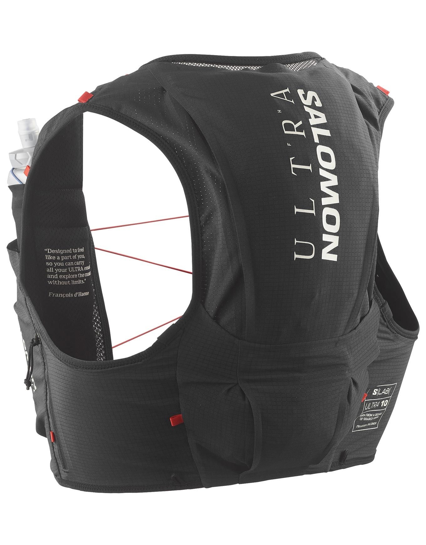Salomon S/lab Ultra 10 Set est un gilet d’hydratation 10 L conçu pour le trail longue distance, offrant un fit précis SensiFit™, des poches avant pour softflasks 500 ml et une matière stretch légère sans frottement.