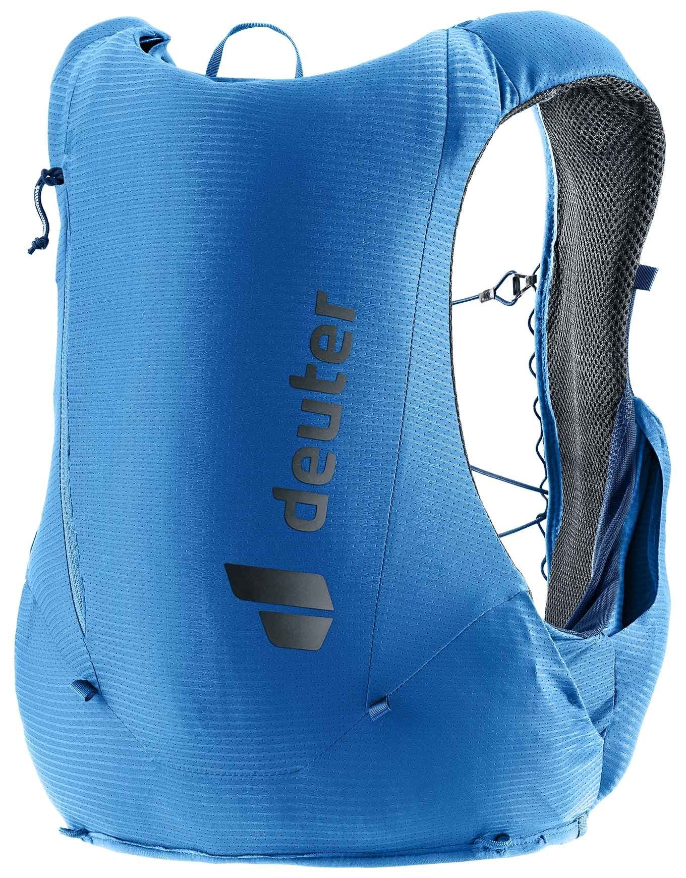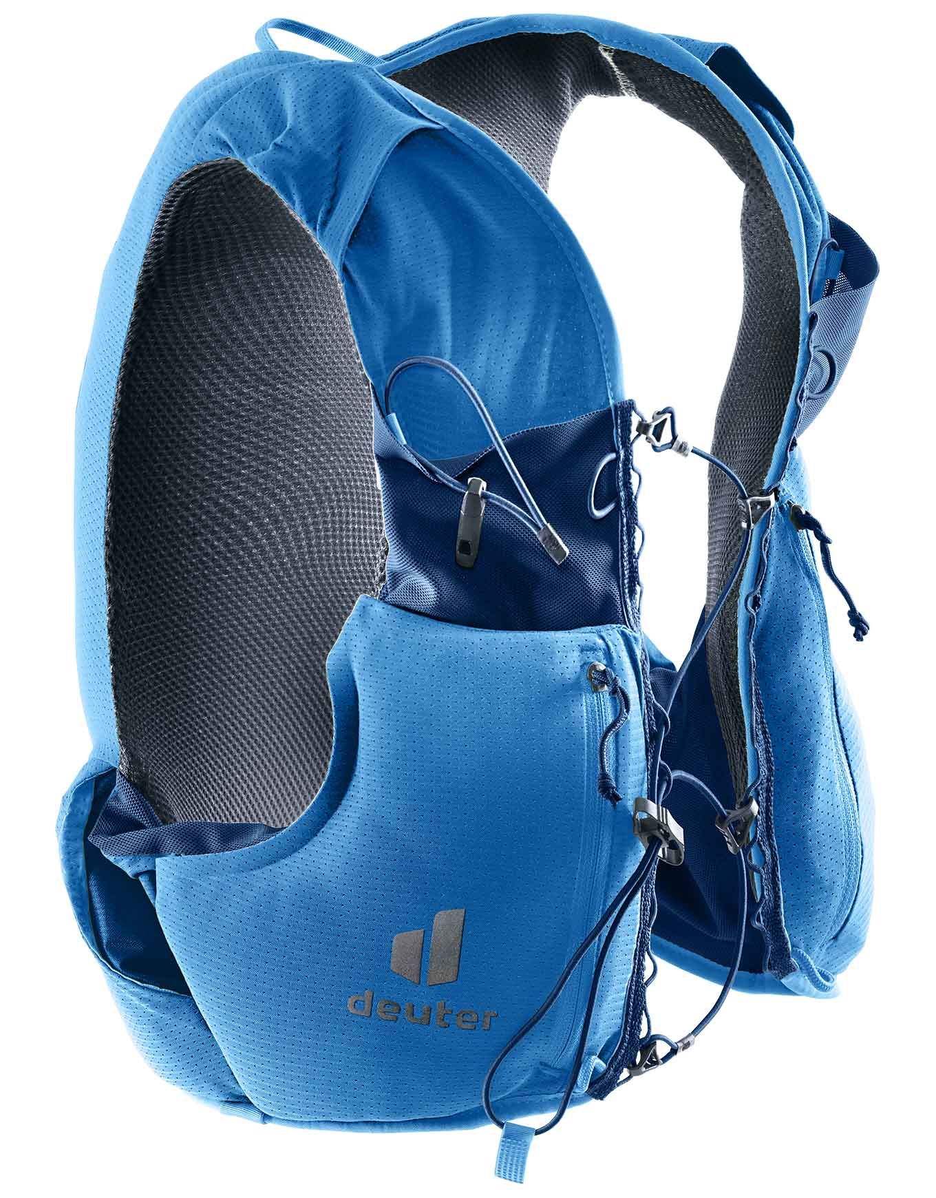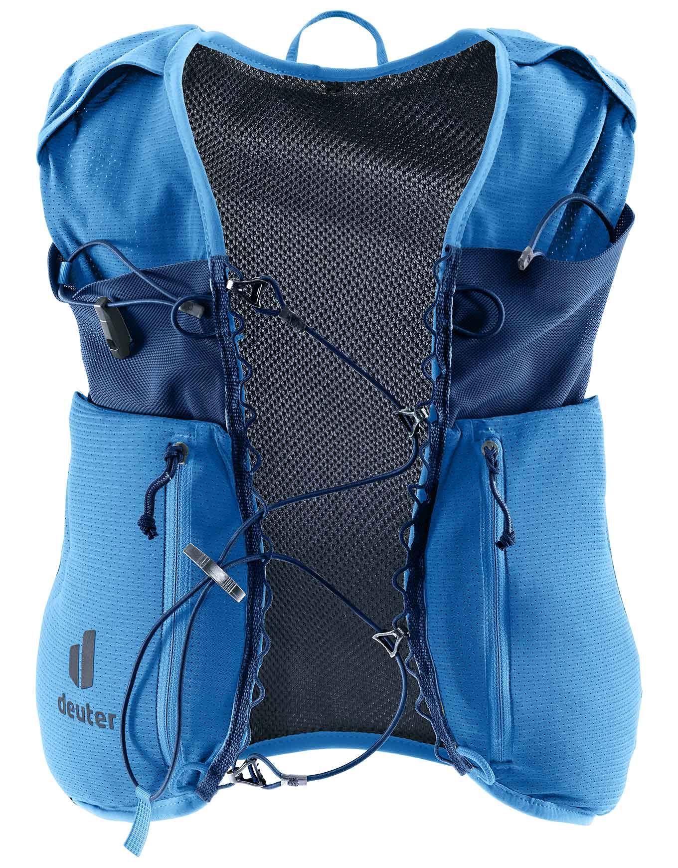 Le gilet de trail running Deuter Traick 5 Neptune Nightblue pour homme allie légèreté, coupe ajustée stretch respirante et accès rapide aux poches pour performer en montagne.