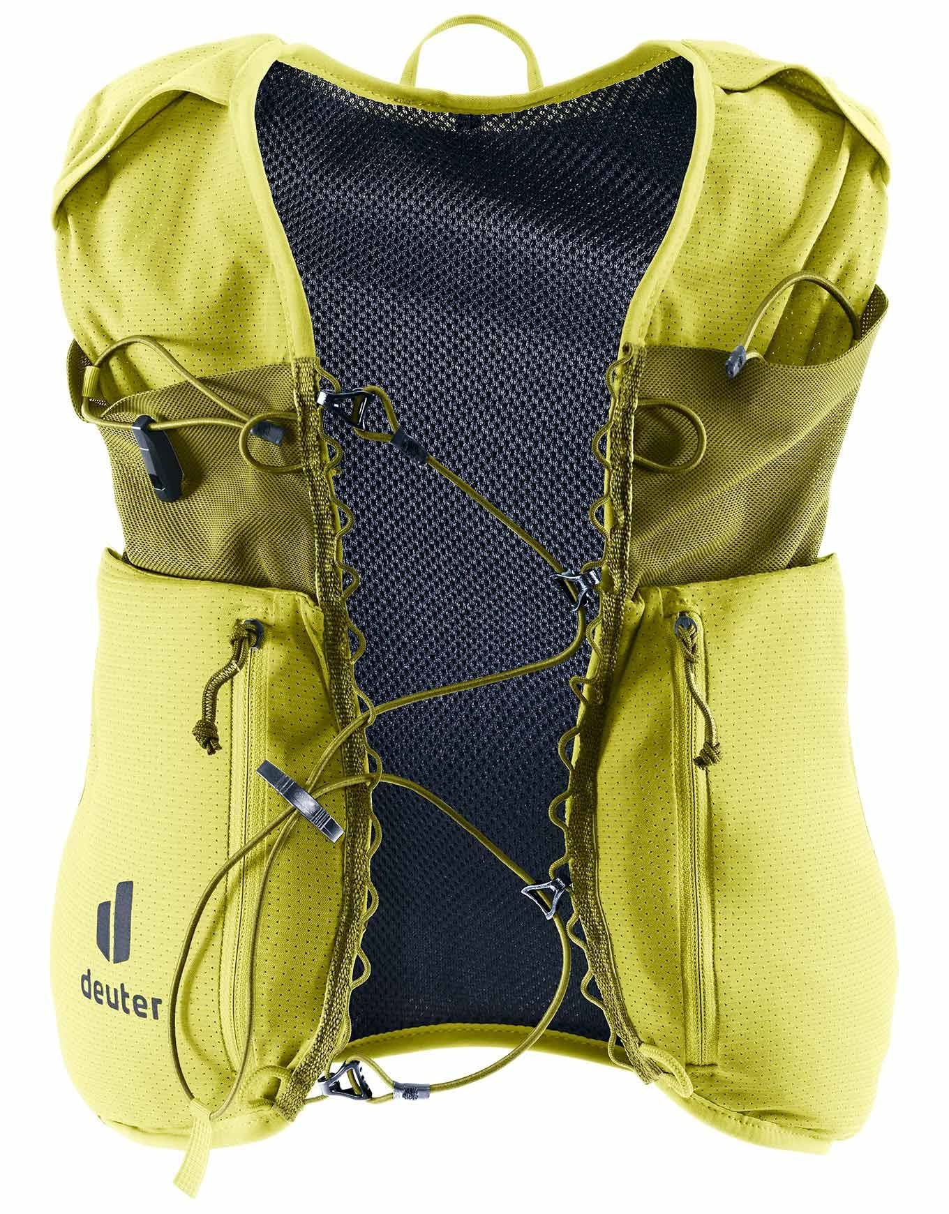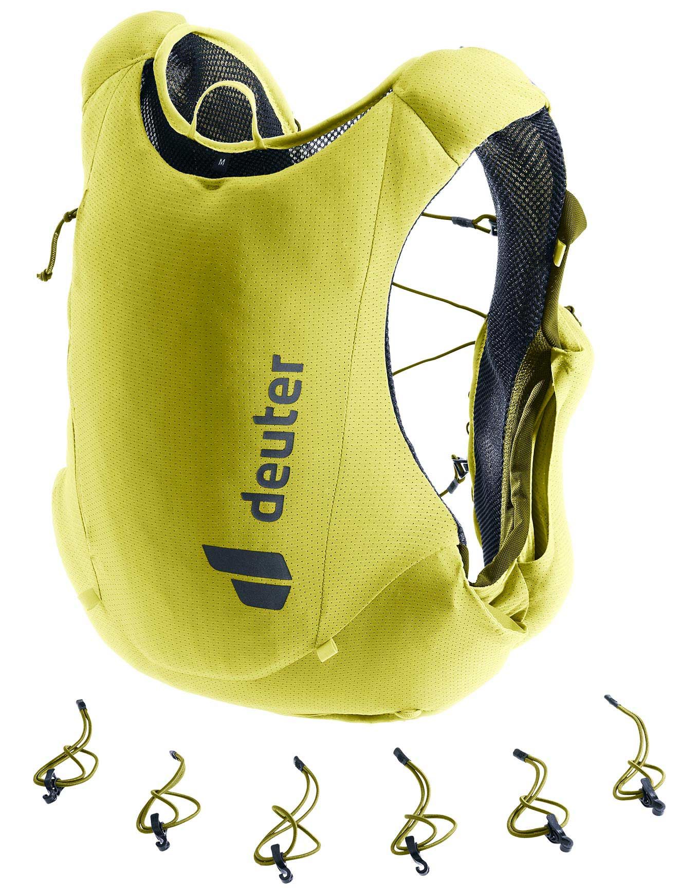 Le gilet de trail running Deuter Traick 5 Sprout Cactus pour homme allie légèreté, matériaux stretch respirants et sangles de compression modulaire pour un confort stable sur les longues distances. Poches d’accès rapide, fixations bâtons avant/arrière, confection Bluedesign® et Green Button assurent performance et neutralité climatique.