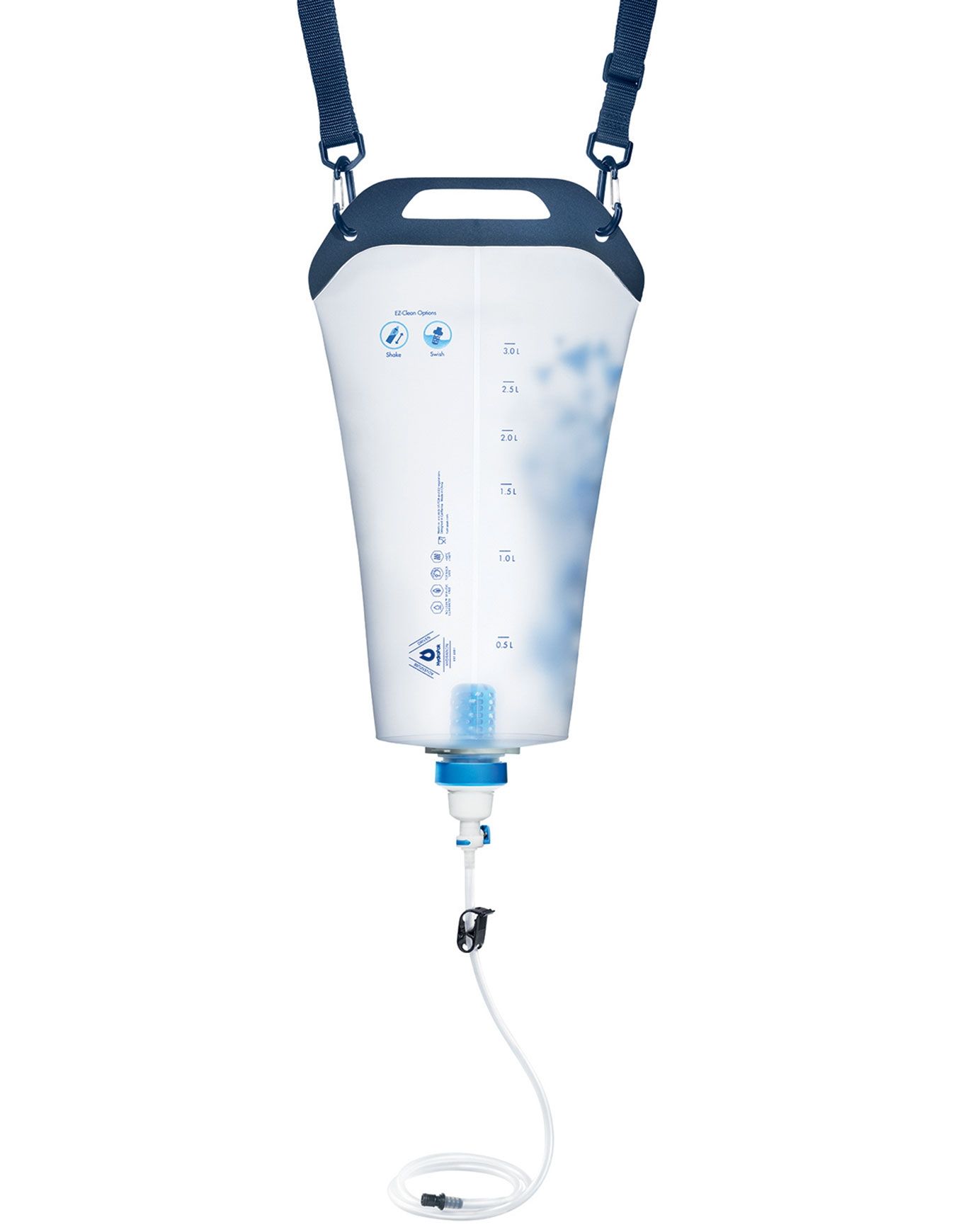 Conçu par Katadyn pour les groupes de randonneurs et de campeurs, le BeFree Gravity 3L constitue un système de filtration par gravité. L’utilisation se fait par simple remplissage du réservoir supérieur que l’on suspend ensuite : l’eau ainsi purifiée coule alors directement dans la gourde, sans effort.