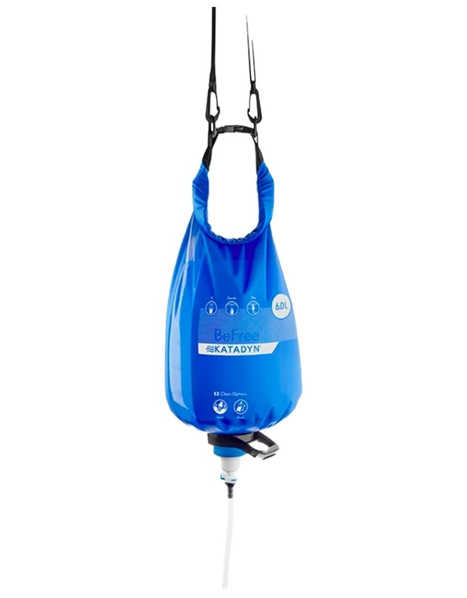 Katadyn BeFree Gravity 6L : système de filtration d’eau par gravité pour groupes, élimine bactéries et protozoaires à 0,1 µm, poche 6 L compressible et liaison rapide.