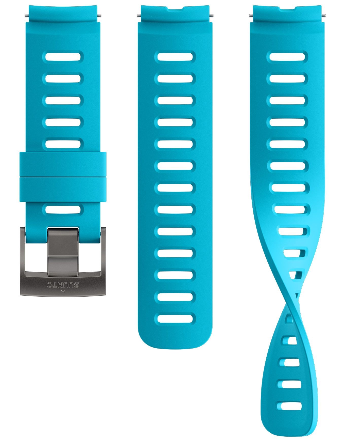 Bracelet Suunto 22 DIV1 Silicone Strap Aqua Blue en silicone perforé, respirant et confortable pour entraînements intensifs, livré en 2 longueurs S/M pour un ajustement optimal.