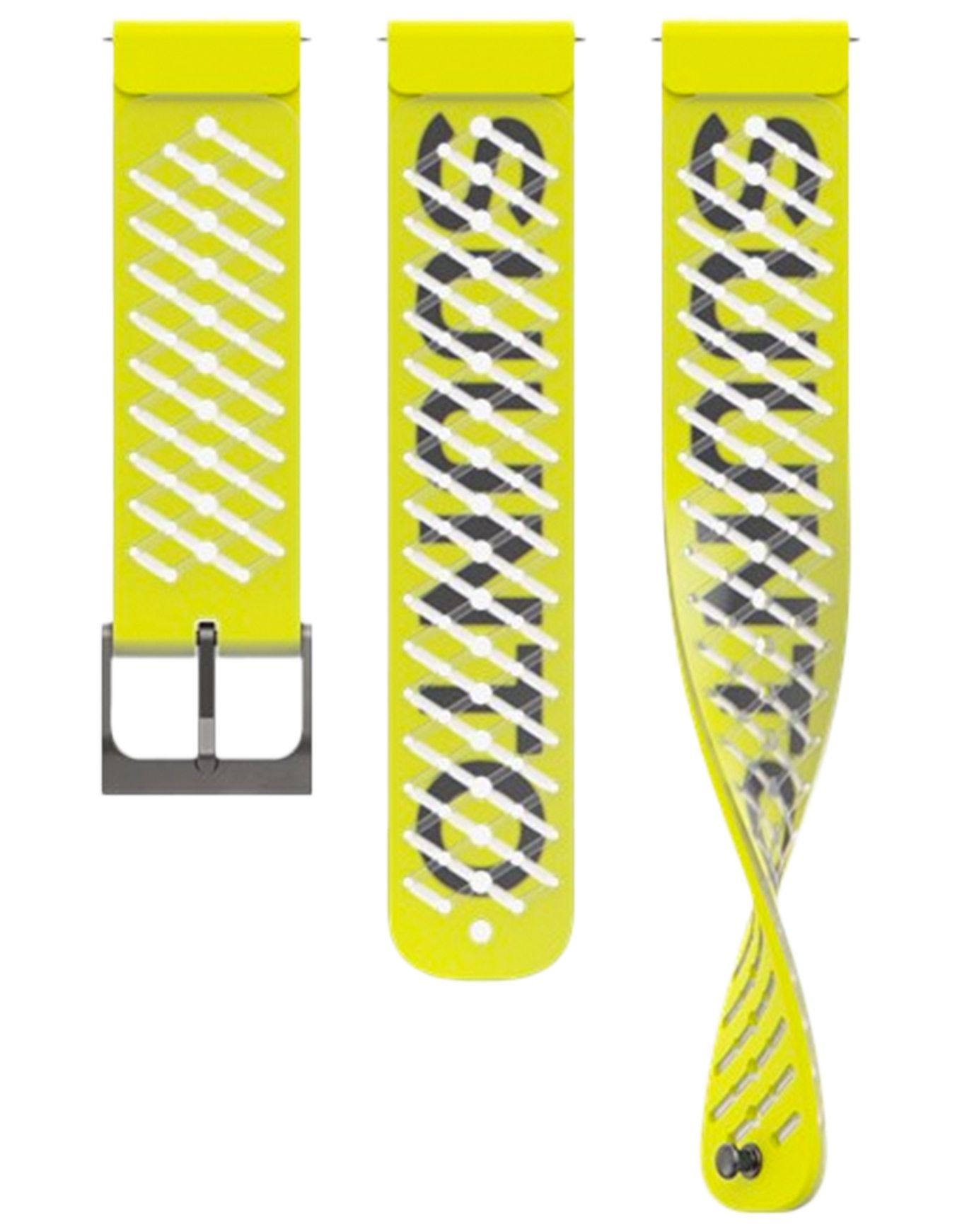 Bracelet silicone Suunto Athletic 5 22 mm Lemon Yellow : respirant, ajustable rapidement sans outil, compatible toutes montres 22 mm, deux tailles interchangeables.