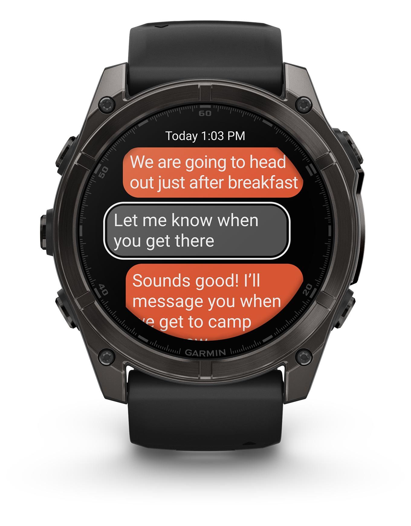 Son écran AMOLED haute définition rend les informations détaillées et la cartographie facile à lire en un coup d’œil, le tout sur la base d’une autonomie de 29 jours sur ce modèle 51 mm. La Fenix 8 intègre aussi un haut-parleur et un micro afin que vous puissiez passer et recevoir des appels directement depuis la montre lorsqu’elle est associée à votre smartphone. L’application Garmin Messenger vous permet quant à elle de communiquer par textos.