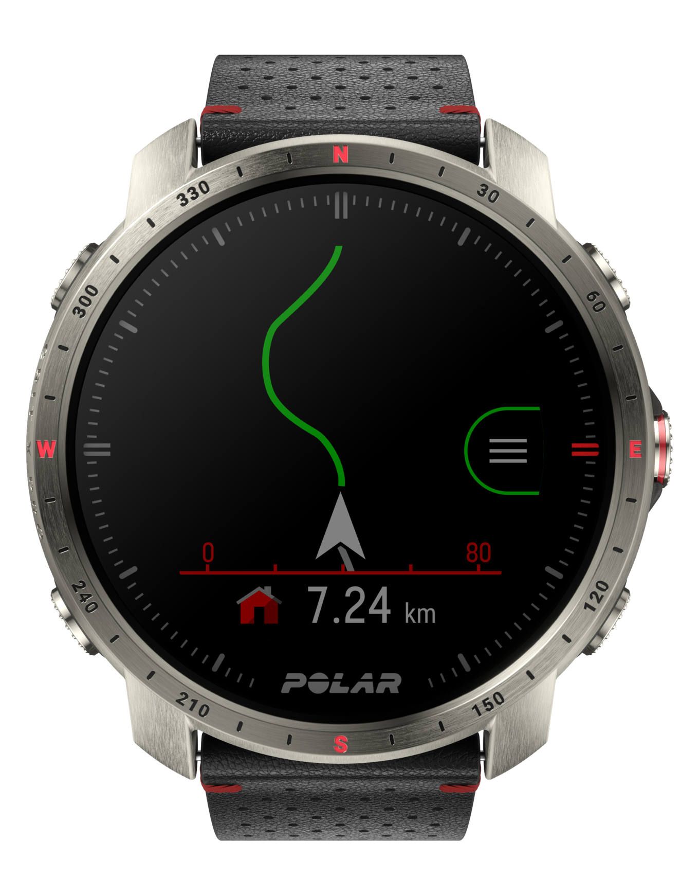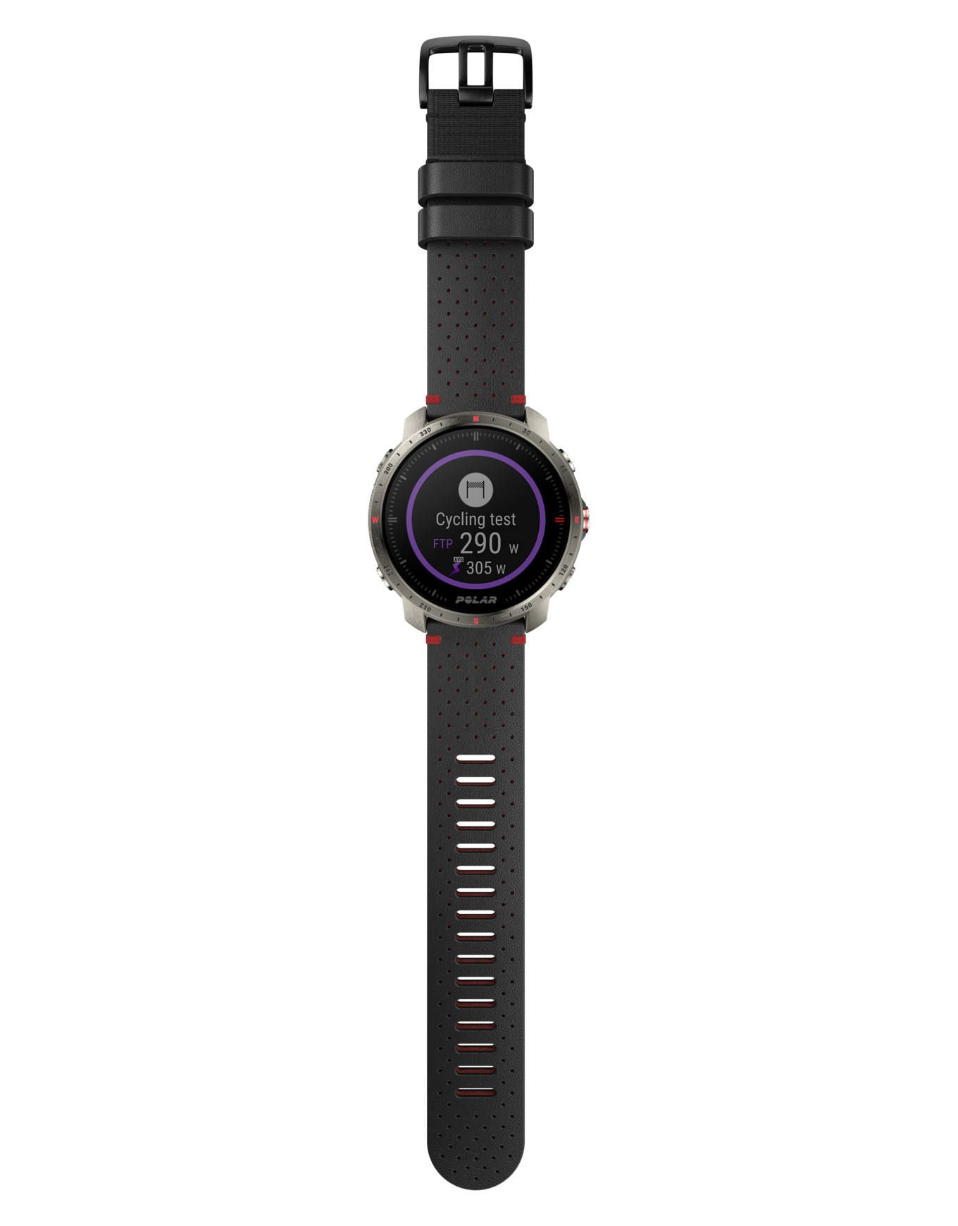 La Polar Grit X Pro Titan est une montre GPS outdoor haut de gamme en titane et verre saphir, résistante à 100 m et de -20 à +50 °C, avec boussole, altimètre, météo et guidage Komoot pour plus de 130 sports.