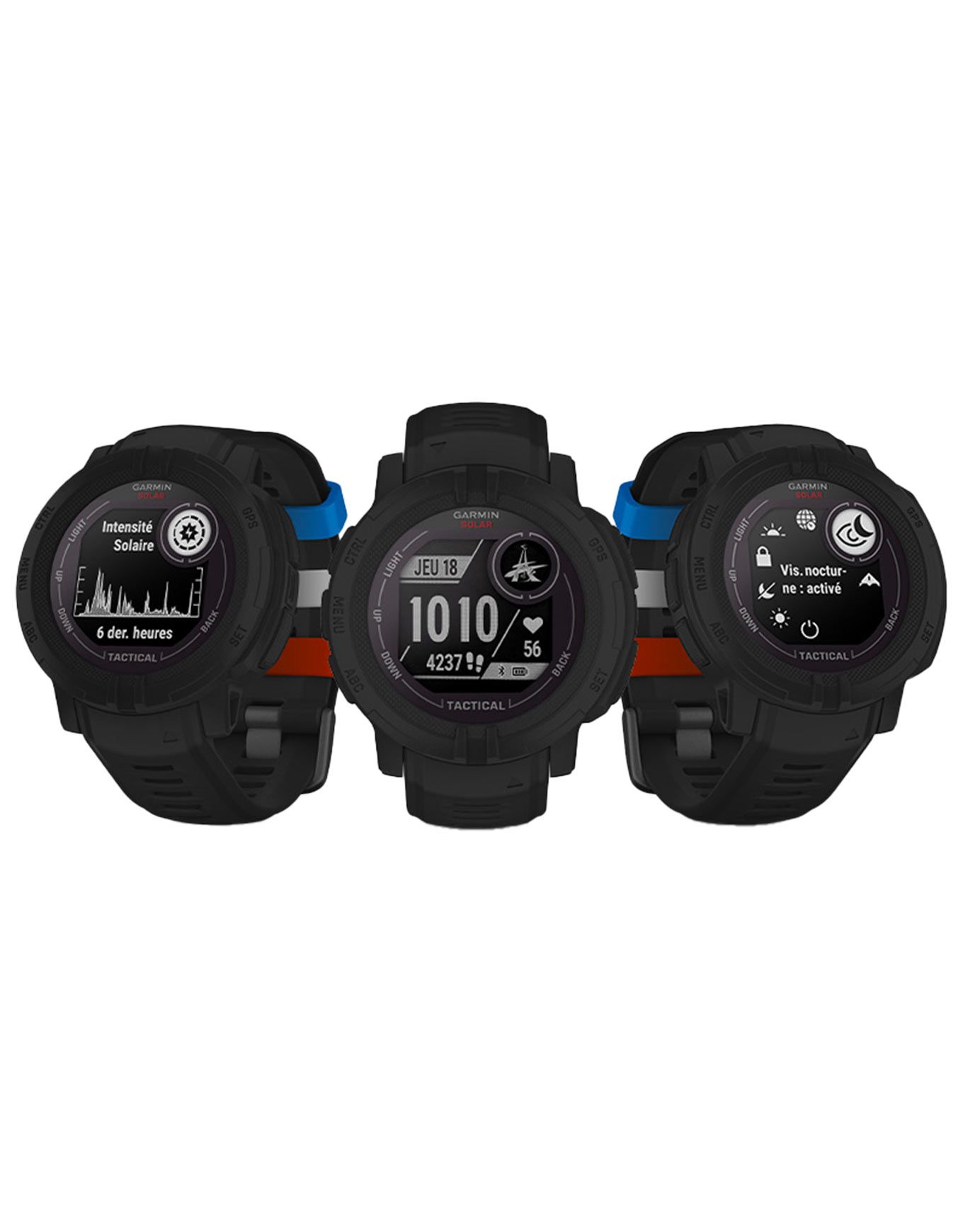 Vous profiterez grâce à sa fonction solaire d’une autonomie illimitée en usage montre, et d’une durée hautement allongée en utilisant tous les GPS. Quelques fonctionnalités tactiques amélioreront encore plus votre expérience comme le mode vision nocturne, le mode furtif et l’arrêt d’urgence.