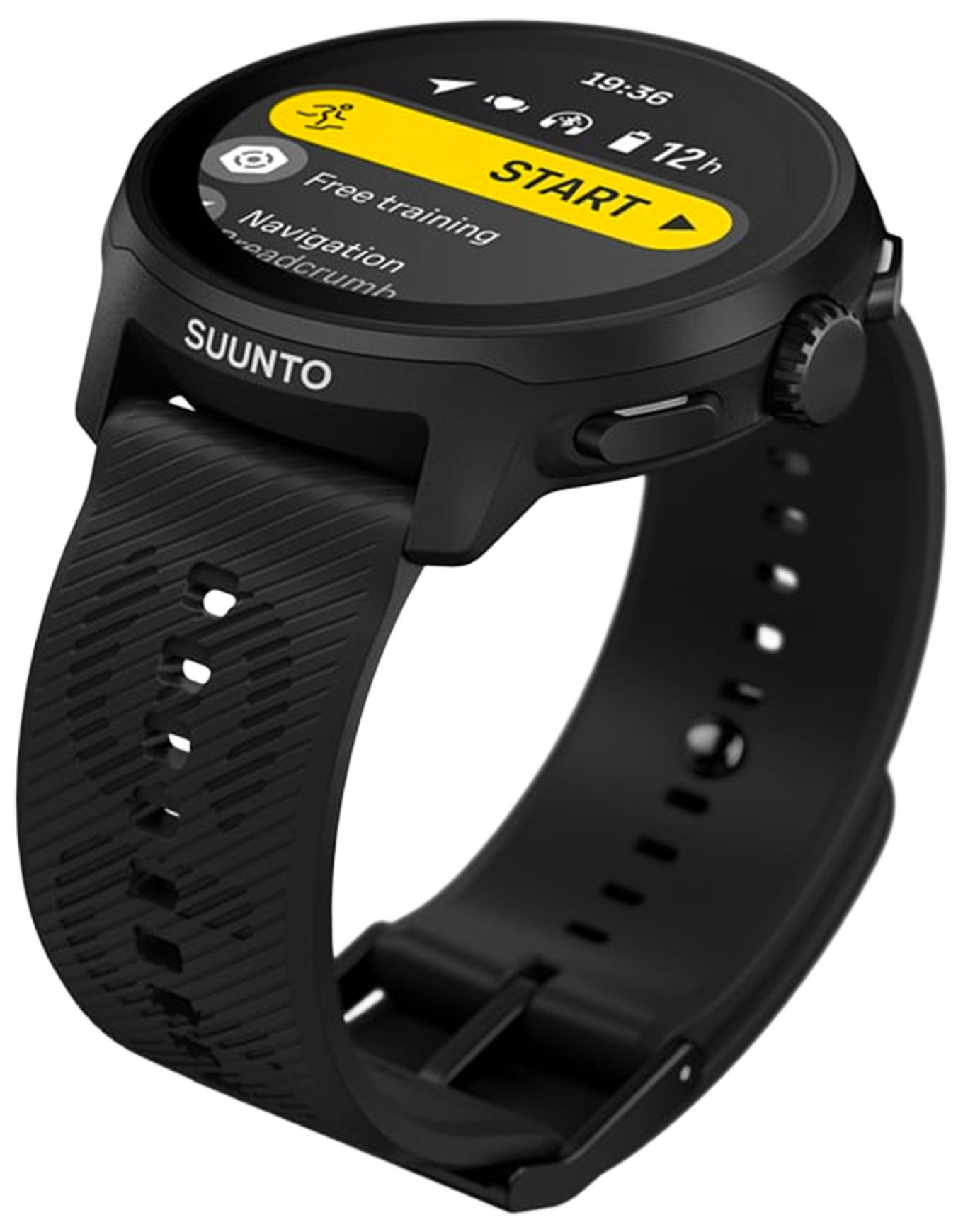 Montre GPS Suunto Run All Black, la plus légère du marché, avec écran AMOLED, bracelet silicone 22 mm, verre Gorilla, étanchéité 50 m, autonomie 20 h GPS et 12 jours en mode montre.