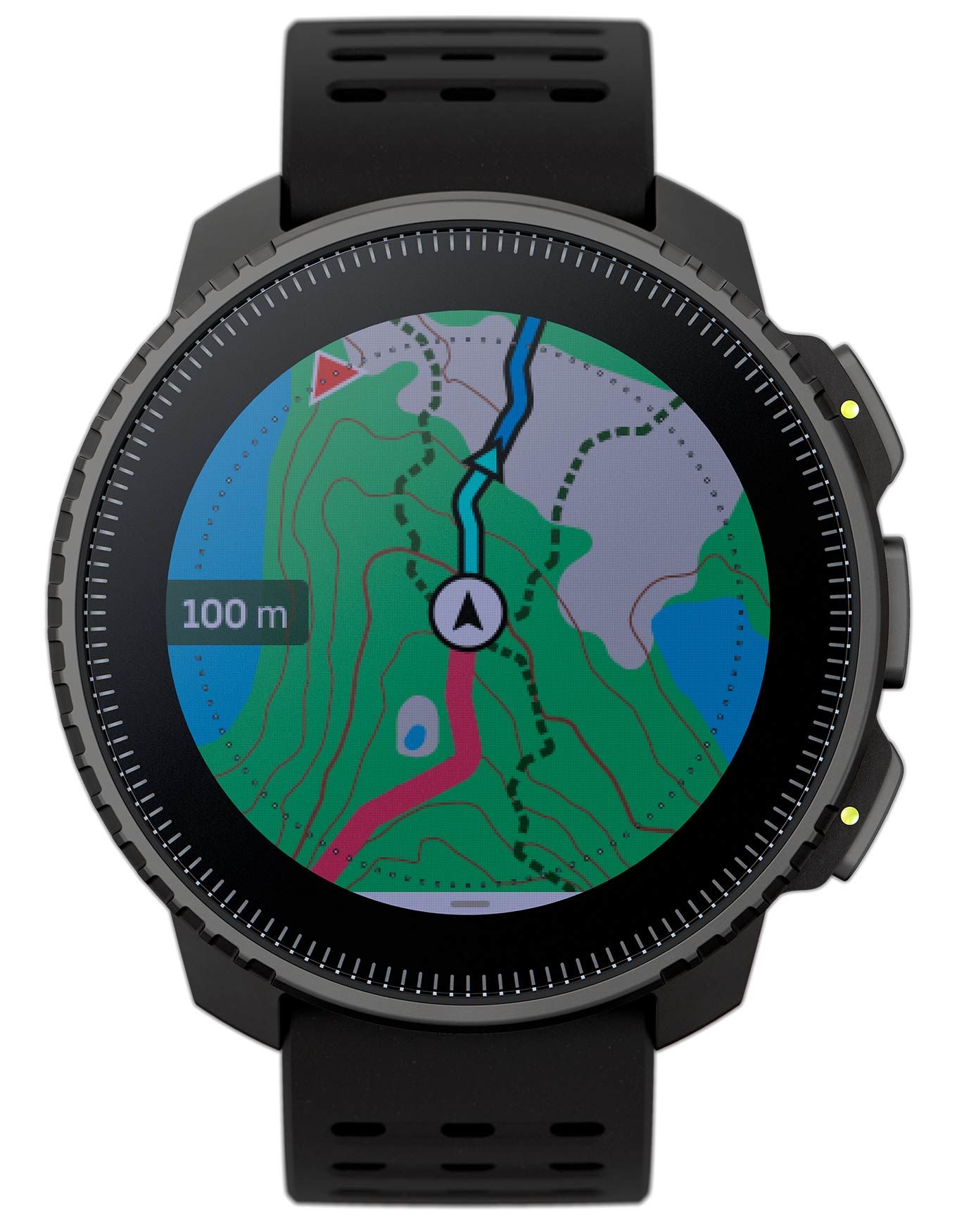 - Suivi d’itinéraires préalablement importés depuis l’application Suunto